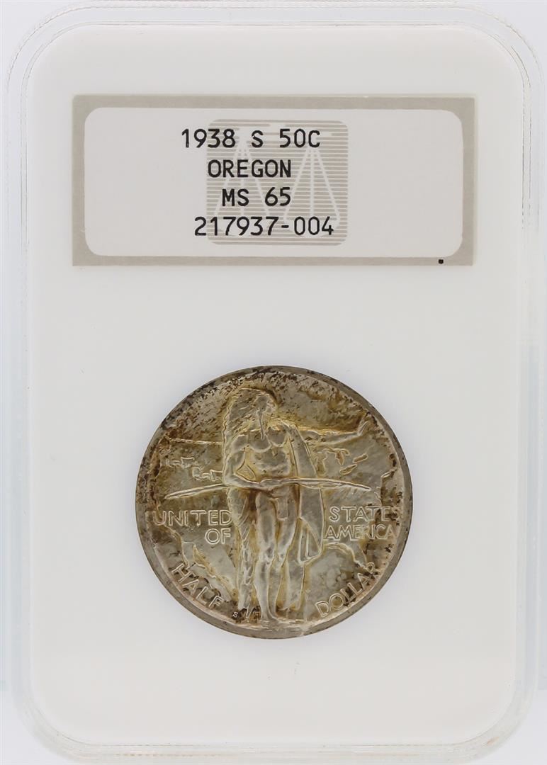 One 1938-S NGC Graded MS65 Oregon Half Dollar Silver Coin. NGC Certified.