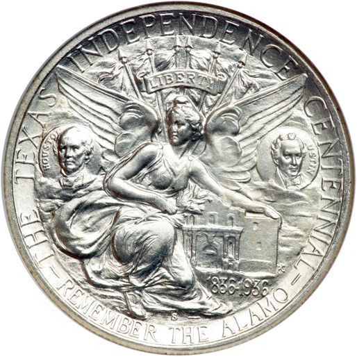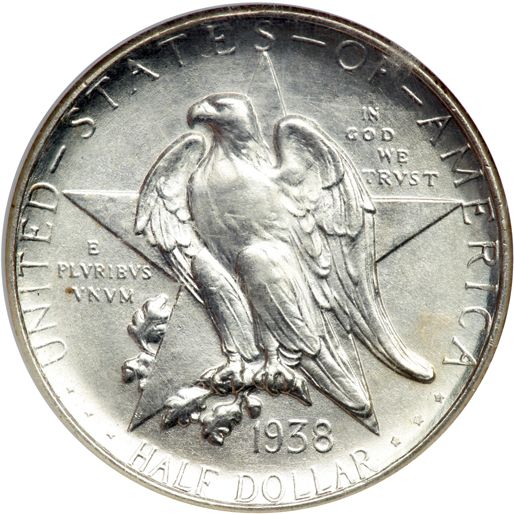 1938-S Texas Half Dollar. NGC graded MS-66. A white coin, satiny with unblemished fields plus bold devices (PCGS # 9396) .