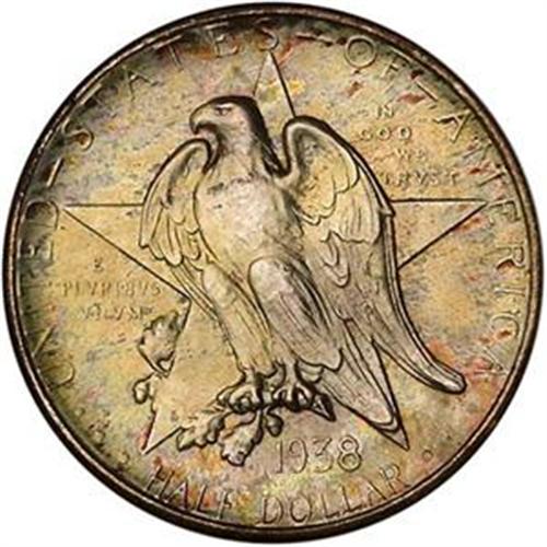 Housed in an early generation NGC holder, and a coin with the classic look of an undipped specimen taken fresh from its commemorative card or envelope of issue. Well struck, satiny. Also scarce, since 1938-S boasts low mintage: 3,814 pieces.