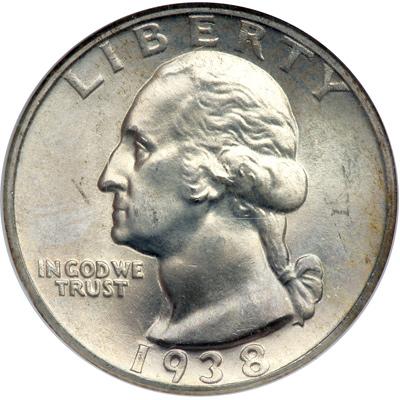 1938-S Washington Quarter Dollar. NGC graded MS-67. A hint of light golden toning, superb luster. Pop 39; 1 in 68.