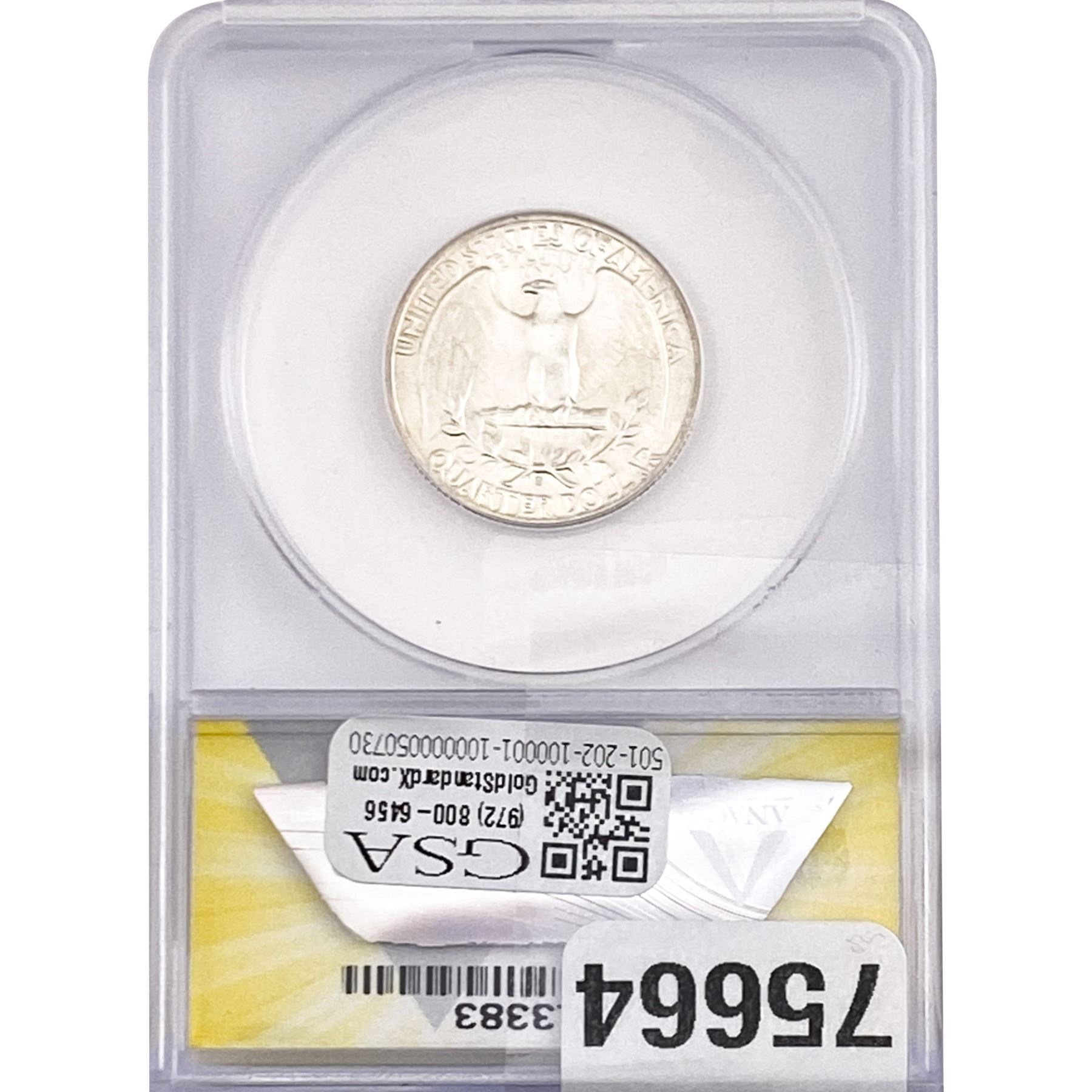 1938-S Washington Silver Quarter ANACS MS65
