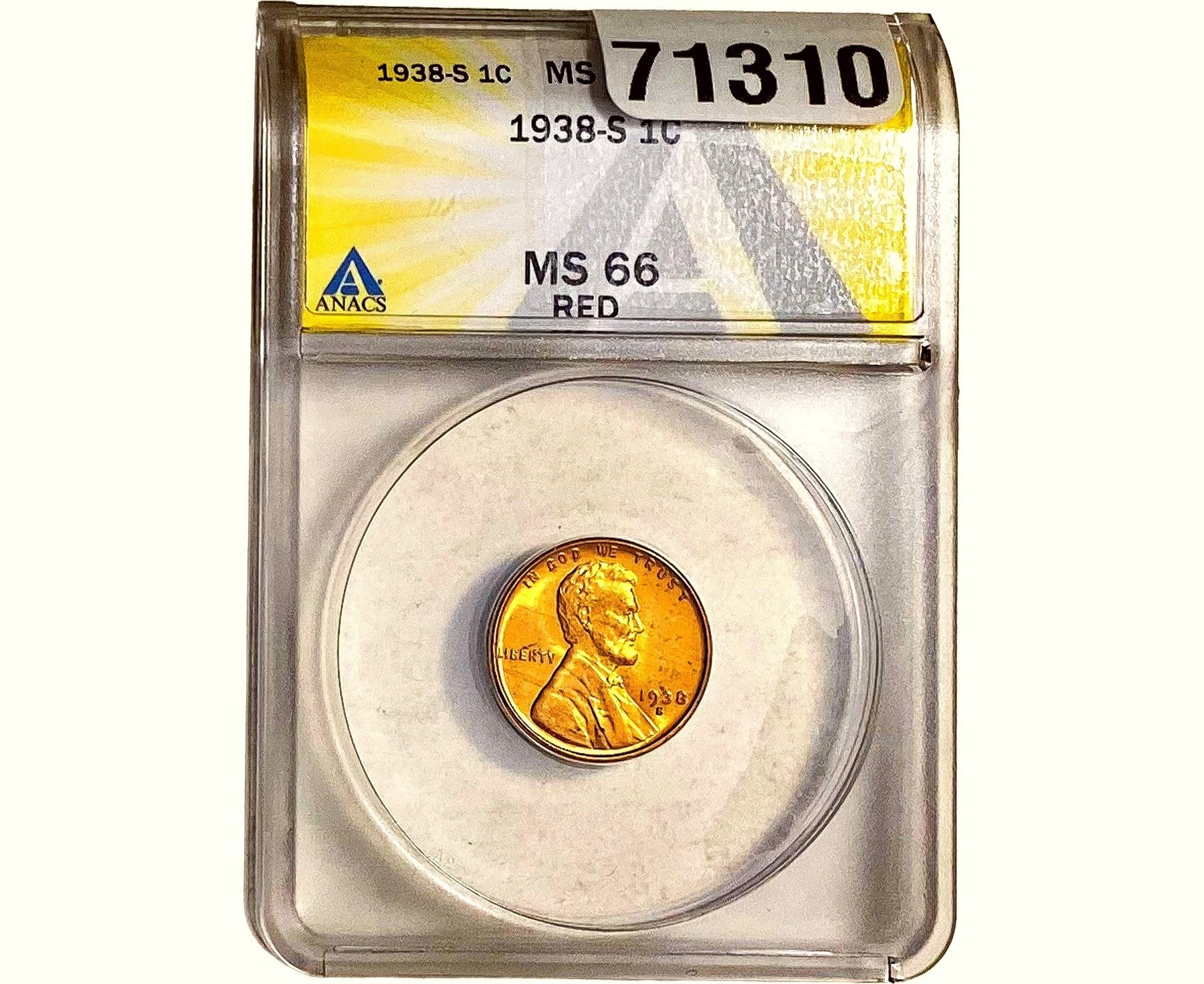 1938-S Wheat Cent ANACS MS66 Red