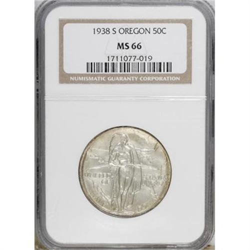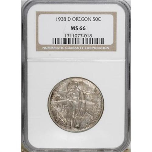 <B>1938 SET Oregon PDS Set MS66 NGC.</B></I> A beautiful set, with each piece displaying full luster and exquisitely struck devices; the Philadelphia issue exhibits deep peripheral toning, the Denver piece is somewhat dappled on the obverse with deep peripheral reverse patination, and the San Francisco specimen displays a golden-tan reverse.<BR><BR><b>Shipping:</b> Coins & Currency (<a target="_blank" href="http://www.heritageauctions.com/common/shipping.php">view shipping information</a>)