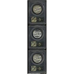 <B>1938<SET> Oregon PDS Set MS66 PCGS.</B></I> The P and S-mint examples show the largest amount of toning, both showing traces of gold and russet coloration. The S-mint is essentially white with only hints of gold patina. All three pieces are seemingly free from even trial marks. <BR><BR><B>Important notice:</B> Heritage usually auctions material at the rate of 200-250 lots per hour. On some occasions eBay Live bid software or the Internet may not be able to keep up with the pace of the auction. We recommend placing a realistic absentee bid now as insurance to avoid disappointment. Occasionally the auctioneer may eliminate or reject an eBay Live bid, and the auctioneer may also reopen a lot after the close of the eBay live bidding (usually because we missed an audience bid), and may reject your bid even if it shows you as the winning bidder. By bidding via eBay Live, you agree that Heritage may award the lot to another bidder at its sole discretion under the circumstances described above or any other reasonable circumstances. Since eBay bids are not shown to us until we open the lot on the floor, we treat those bids just like floor bids. In most cases the floor responds before the eBay bid is presented to us, due to Internet lag time, so for consistency we have made it a policy that floor bids are always considered first over tie eBay live bids. Also please note that all Heritage lots purchased through eBay Live carry a 20% Buyer's Premium. Please make sure you read the Terms and Conditions before you bid. </span></font></tr></table></td></tr></table>