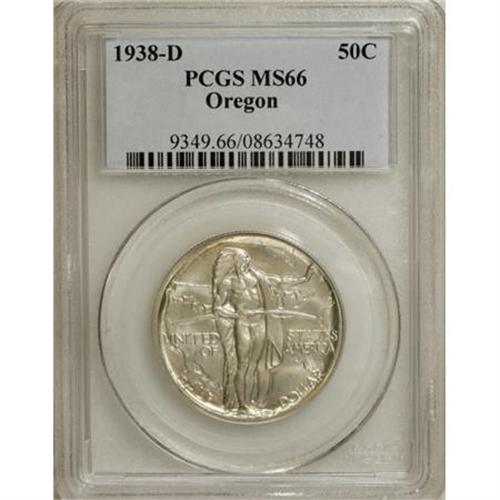 <B>1938 SET Oregon PDS Set MS66 PCGS.</B></I> The set includes: <B>1938</B></I>, thin lines of violet and olive at the peripheries; <B>1938-D</B></I>, primarily satiny and untoned with a line of violet at the upper obverse rim and small dots of crimson on the reverse; and a <B>1938-S</B></I>, silver-gray with elements of rose-violet and charcoal at the margins.<BR><BR><b>Shipping:</b> Coins & Currency (<a target="_blank" href="http://www.heritageauctions.com/common/shipping.php">view shipping information</a>)