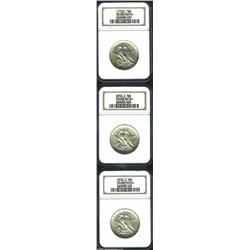 1938 SET Texas PDS Set MS66 NGC. Gold and/or champagne tinting drifts over bright, lustrous surfaces that are silent on the subject of distracting handling marks. Sharp striking detail is another praiseworthy feature of this Gem quality trio. 3 coins Important notice: We expect to be auctioning lots at the rate of 200-250 per hour. Sometimes eBay Premier live bid software cannot keep up with that pace, so we strongly recommend that you place a realistic proxy bid now as insurance to avoid disappointment. Also please note that all Heritage/CAA lots purchased through eBay Premier carry a 20% Buyer's Premium. Please make sure you read the Terms and Conditions.