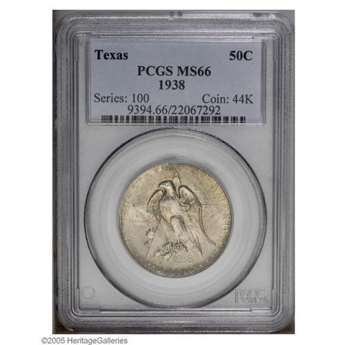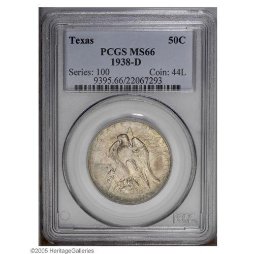 <B>1938<SET> Texas PDS Set MS66 PCGS.</B></I> The set includes: <B>1938 MS66,</B></I> well struck with bright satiny luster and variegated honey-gold, silver, and speckled russet patina; <B>1938-D MS66,</B></I> lovely light toning variations adorn the sparkling, sharply struck surfaces; and a <B>1938-S MS66,</B></I> boldly struck and impeccably preserved, with flashy, lustrous surfaces that reveal mottled gold, tan, and russet coloration over the otherwise silver-gray surfaces.