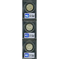 <table><tr><td><table><tr><td>1938 SET Texas PDS Set MS66 to MS67 PCGS. The set includes: 1938 MS66, golden-brown and powder-blue patina, well struck and impressive; 1938-D MS67, tan and dove-gray colors, a good strike, well preserved; and a 1938-S MS66, apricot-brown and steel-blue iridescence, a good strike. The holders have consecutive serial numbers. 3 coins <BR><BR><B>Important notice:</B> Heritage usually auctions material at the rate of 200-250 lots per hour. On some occasions eBay Live bid software or the Internet may not be able to keep up with the pace of the auction. We recommend placing a realistic absentee bid now as insurance to avoid disappointment. Occasionally the auctioneer may eliminate or reject an eBay Live bid, and the auctioneer may also reopen a lot after the close of the eBay live bidding (usually because we missed an audience bid), and may reject your bid even if it shows you as the winning bidder. By bidding via eBay Live, you agree that Heritage may award the lot to another bidder at its sole discretion under the circumstances described above or any other reasonable circumstances. Since eBay bids are not shown to us until we open the lot on the floor, we treat those bids just like floor bids. In most cases the floor responds before the eBay bid is presented to us, due to Internet lag time, so for consistency we have made it a policy that floor bids are always considered first over tie eBay live bids. Also please note that all Heritage lots purchased through eBay Live carry a 20% Buyer's Premium. Please make sure you read the Terms and Conditions before you bid. <BR><BR><B>IMPORTANT ANNOUNCEMENT ABOUT RESERVES:</B> Heritage now divulges all reserves on its web site 7 days before every auction. If you want to know whether the reserve on this lot has been met, and if not, what the reserve amount is, please visit this lot page on the HeritageCoin.com web site, or email: bid@HeritageGalleries.com </span></font></td></tr></table></td></tr></table>