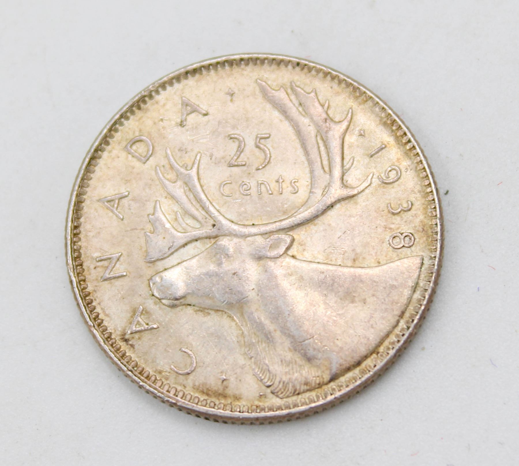 1938 SILVER CANADA HIGHER GRADE 25 CENTS COIN