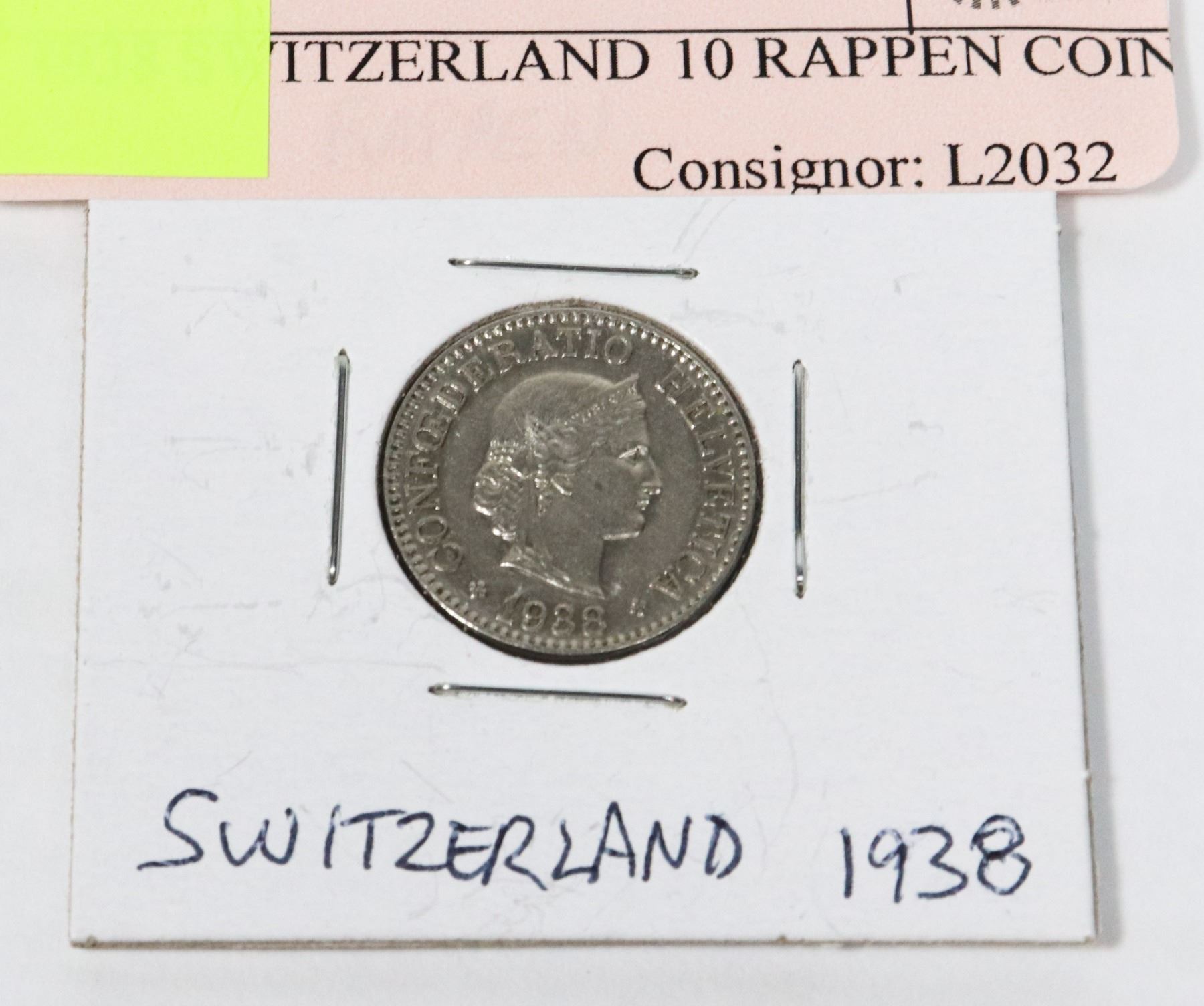 1938 SWITZERLAND 10 RAPPEN COIN