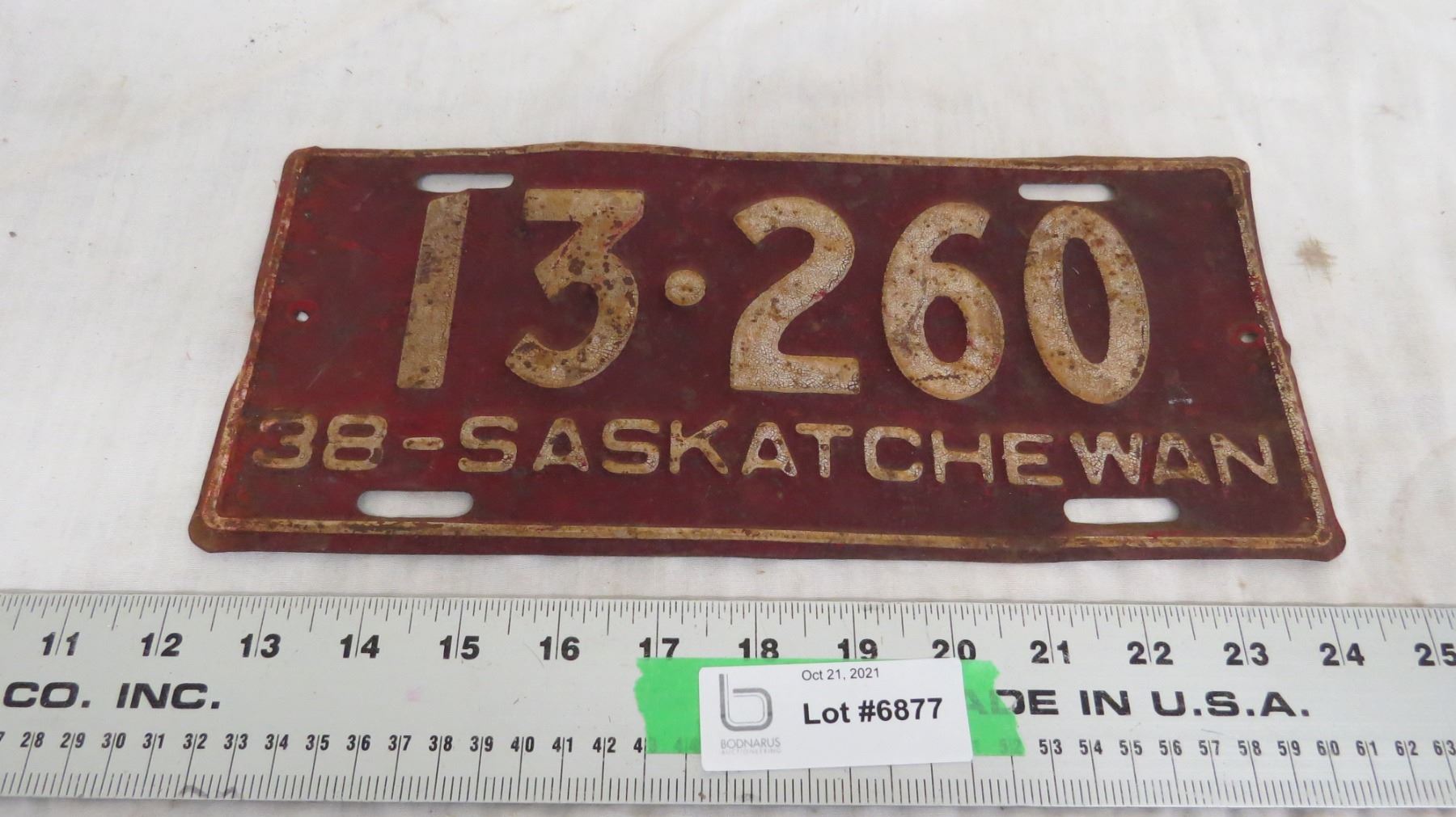 1938 Sask License Plate