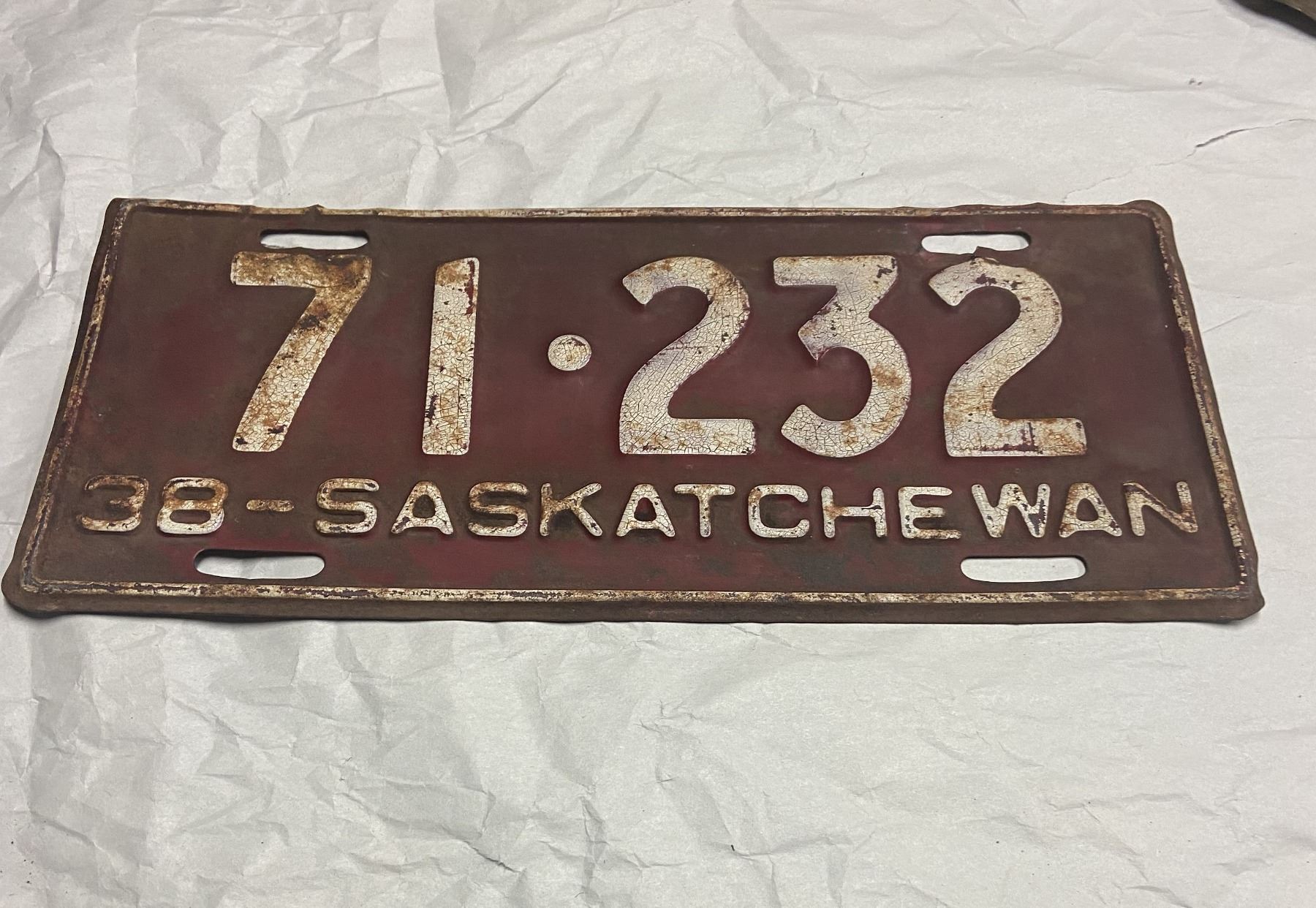 1938 Saskatchewan License plate