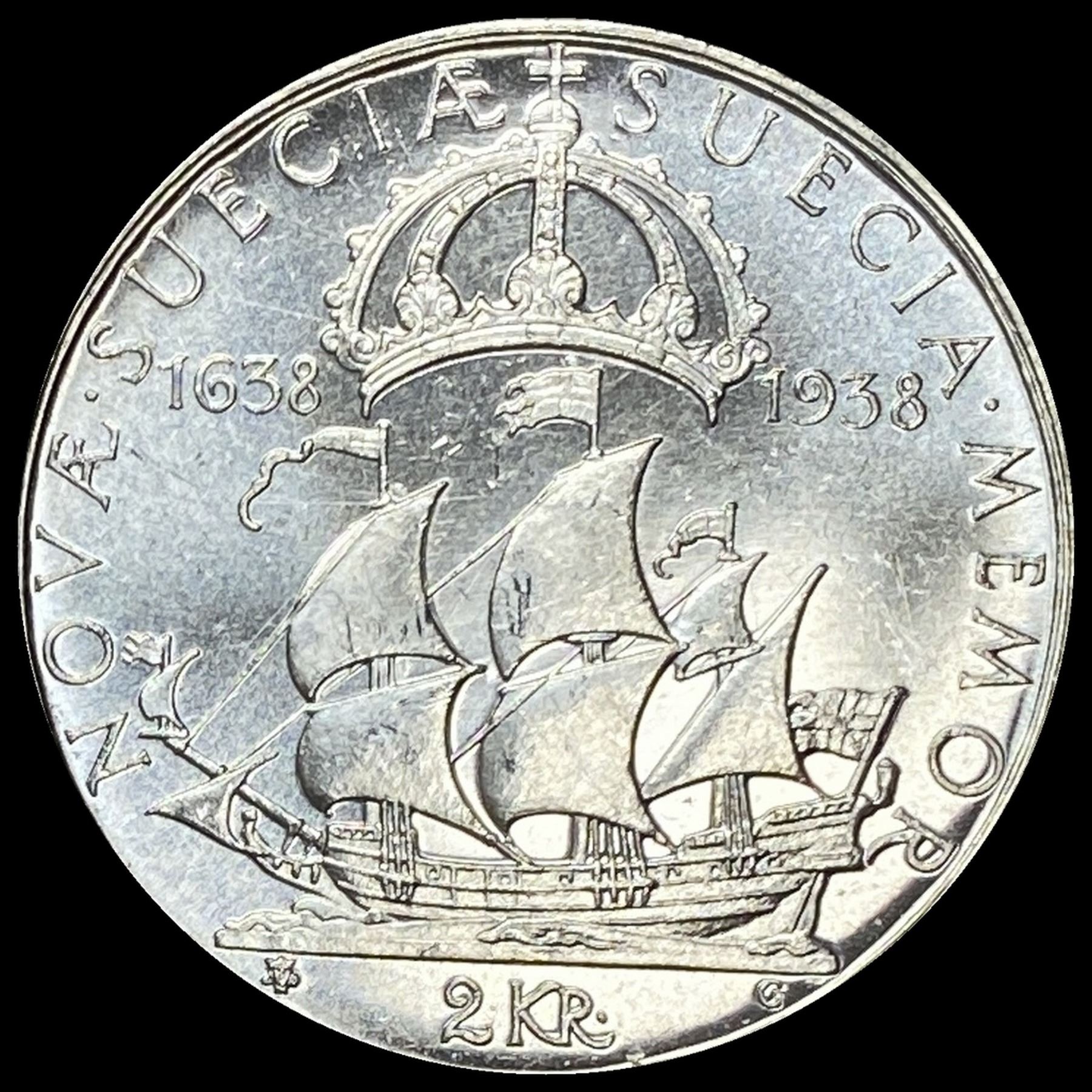 1938 Sweden Silver 2 Kroner UNCIRCULATED