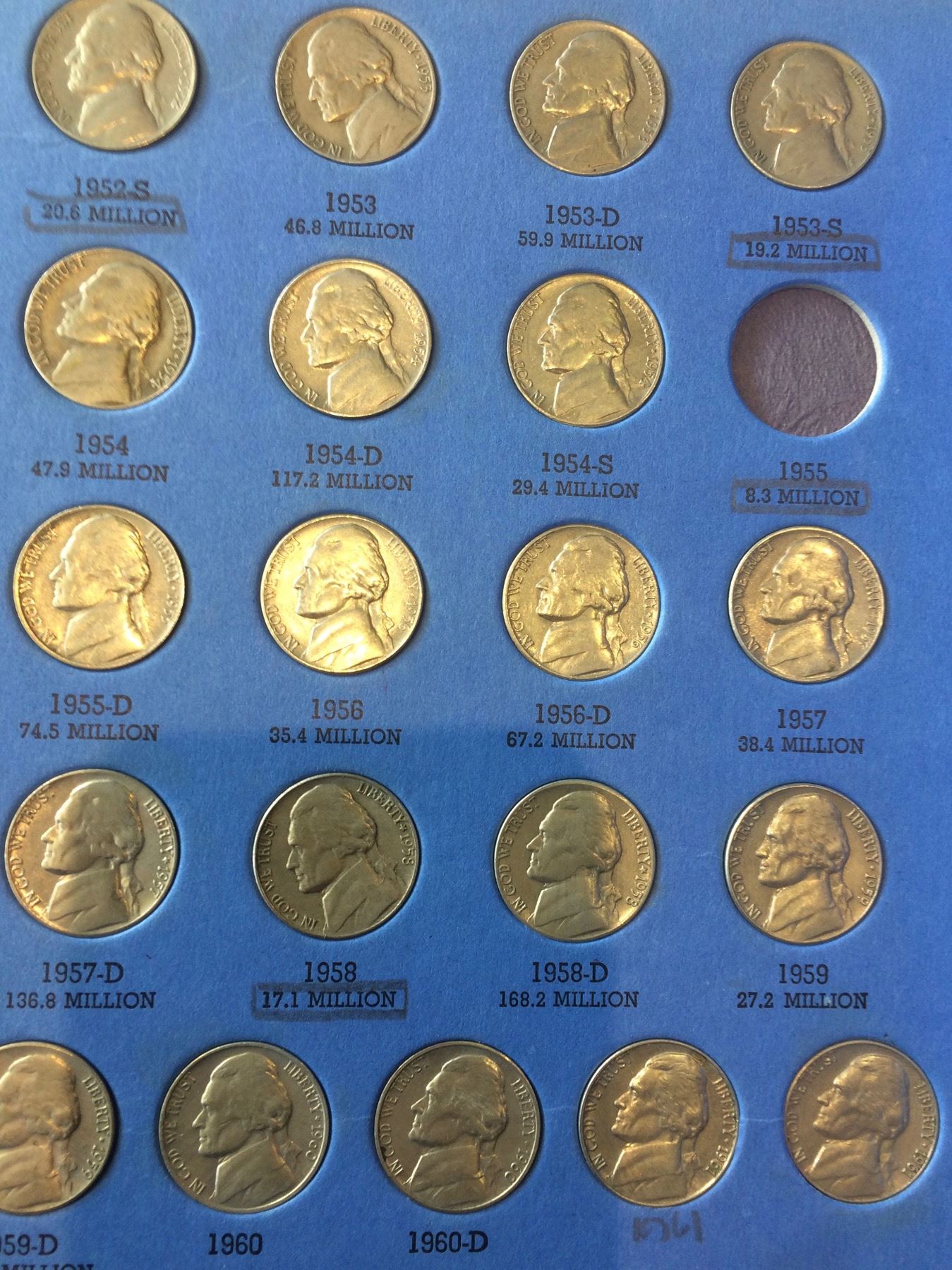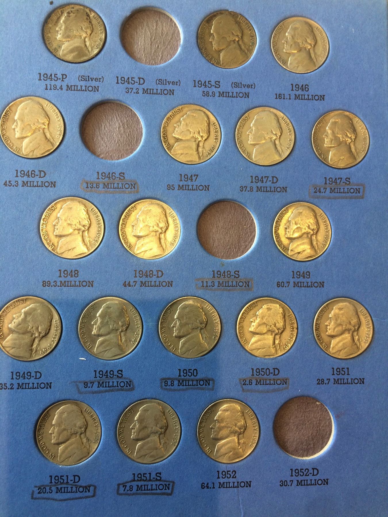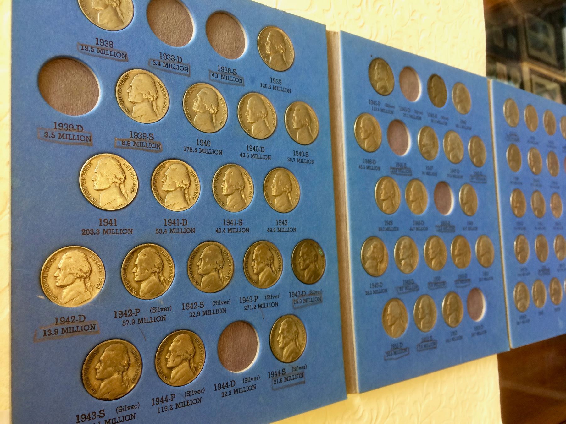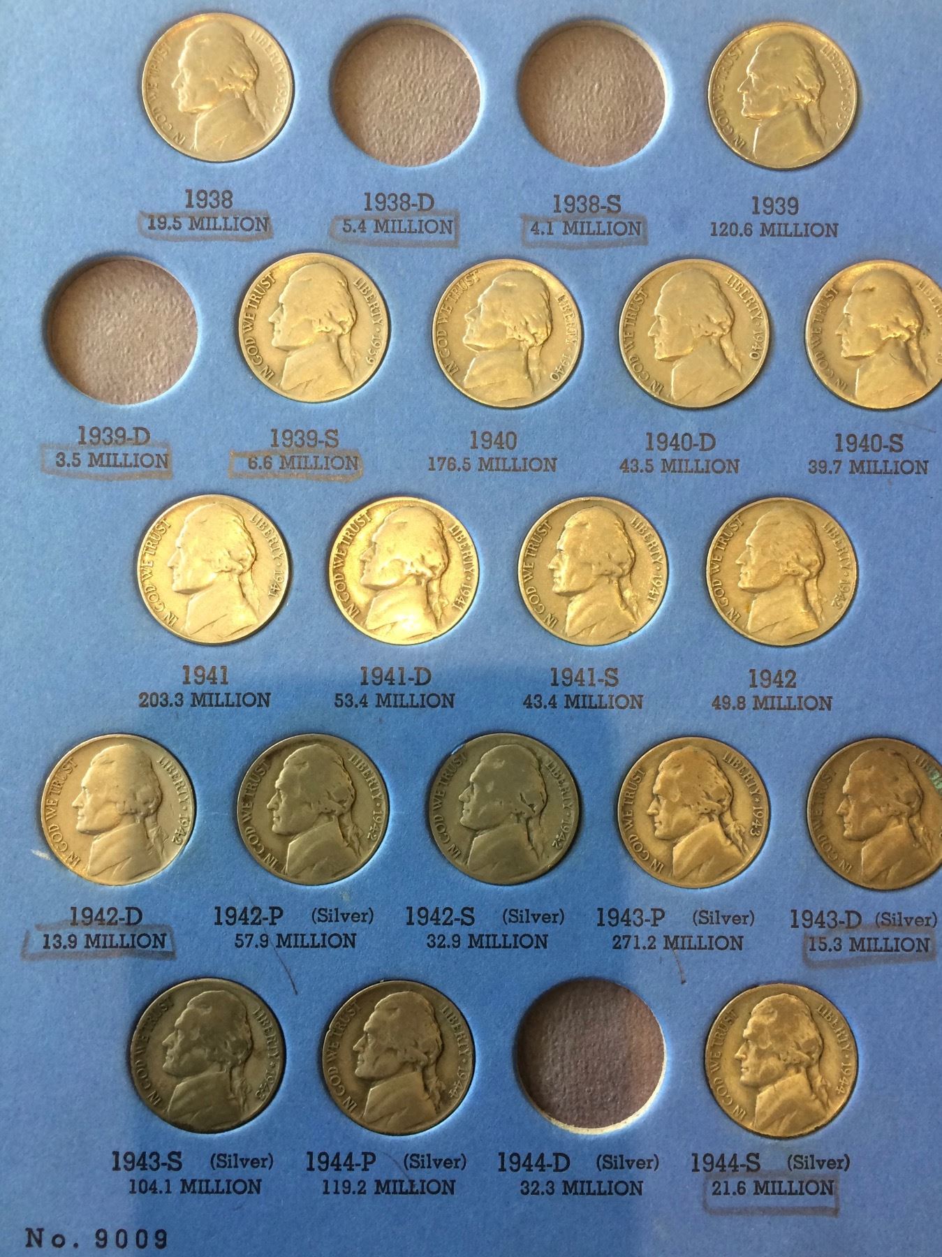 1938 USA Partial Set Jefferson Nickel Album Including Silver Coin