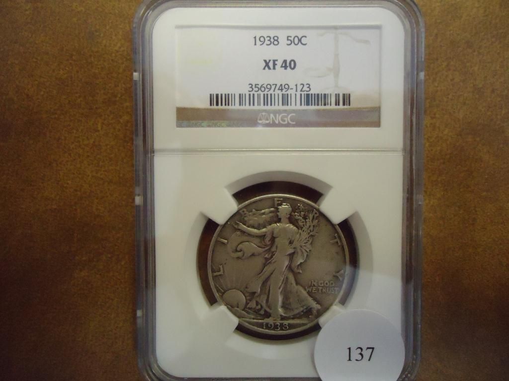 1938 WALKING LIBERTY HALF $ NGC XF40