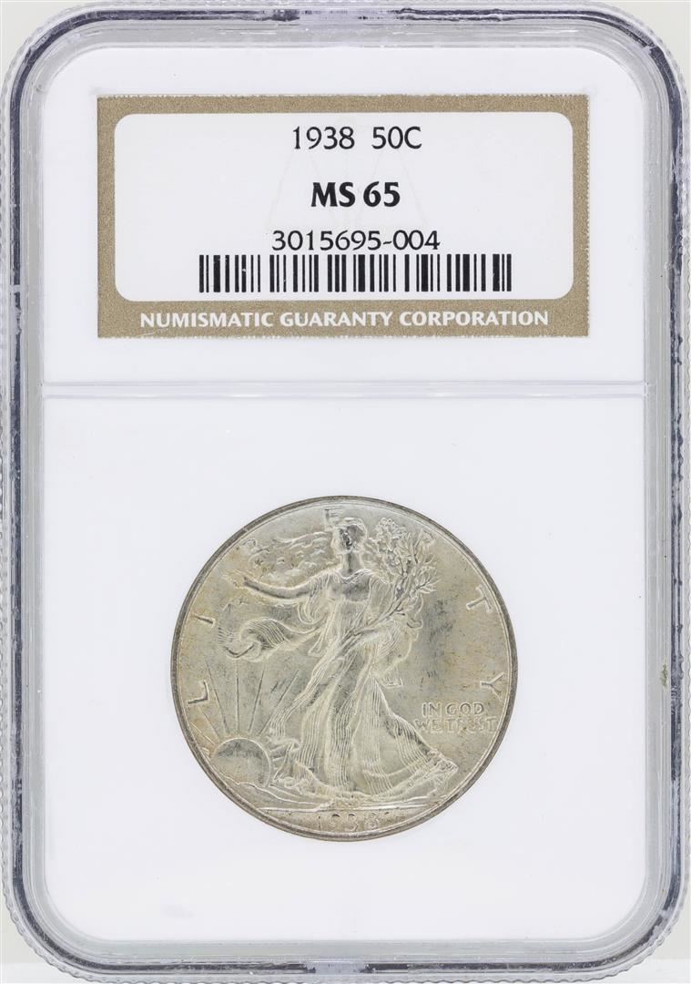 One 1938 Walking Liberty Half Dollar Coin NGC MS65. NGC Certified.
