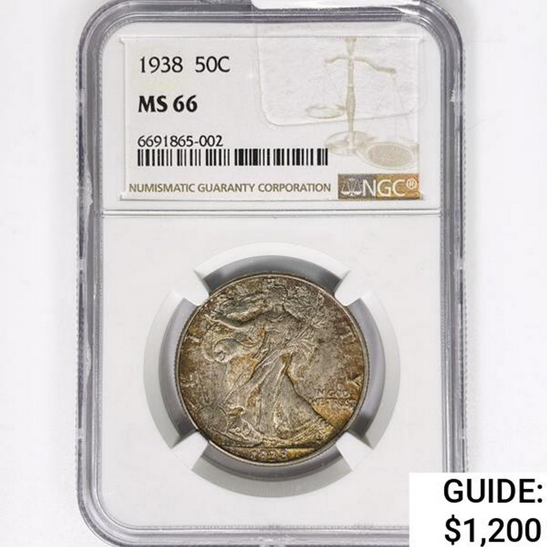 1938 Walking Liberty Half Dollar NGC MS66