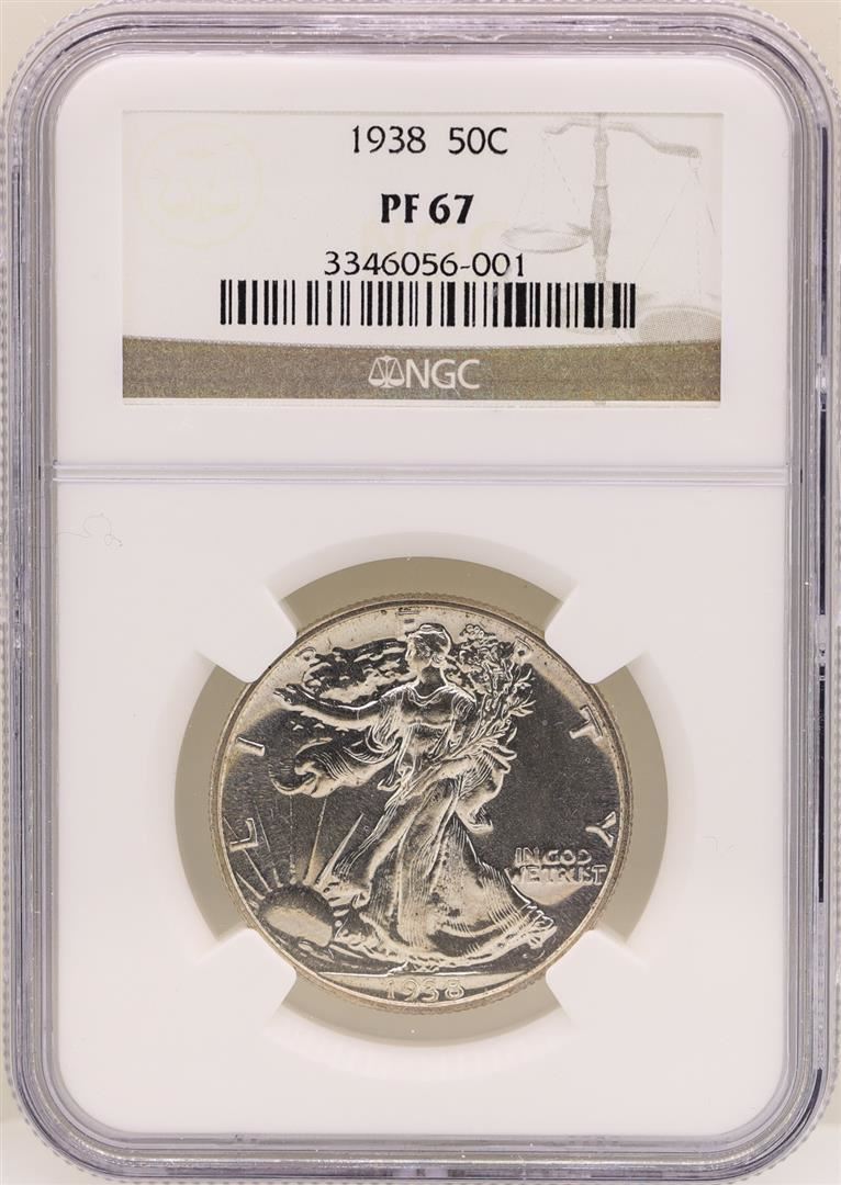 One 1938 Walking Liberty Half Dollar Proof Coin NGC PF67. NGC Certified.