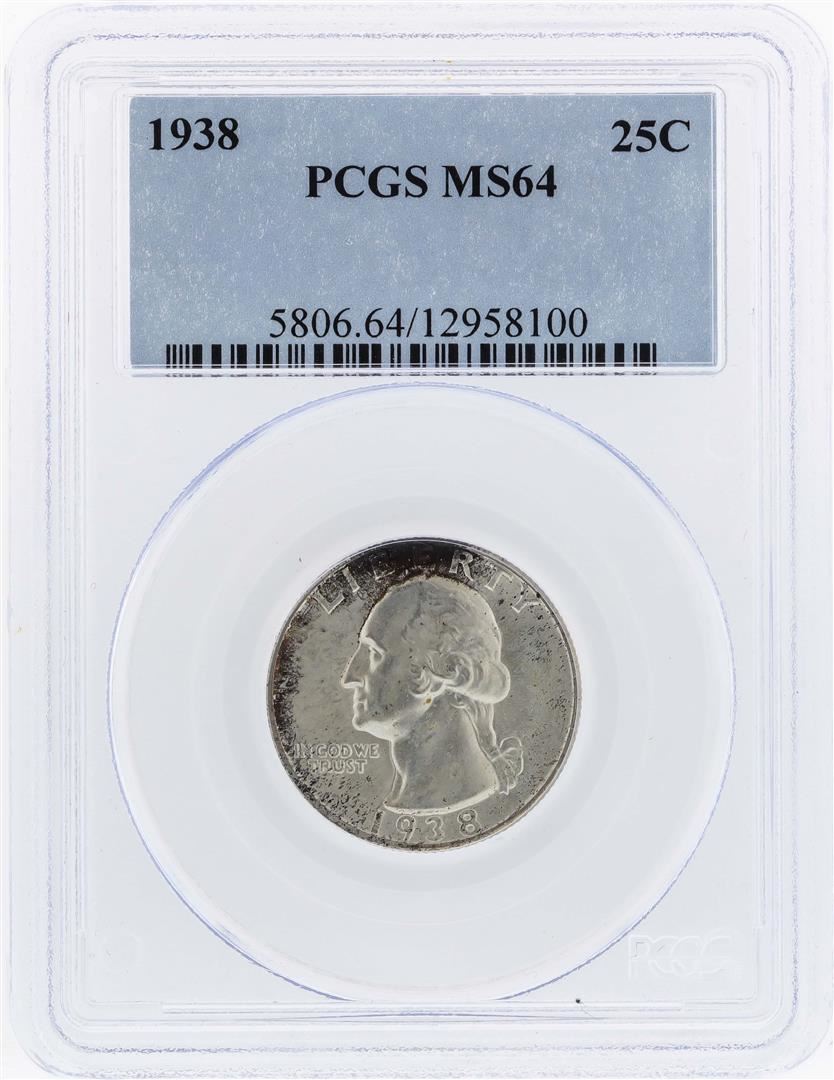 One 1938 Washington Quarter Coin PCGS MS64. PCGS Graded.