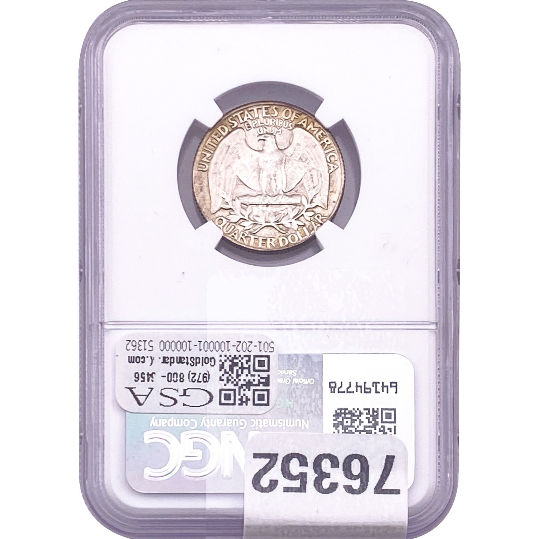 e. Coins sold referencing a third-party grading service are sold “AS IS” without any express or implied warranty, except for a guarantee by GSA that they are genuine. Removal or alteration of the holder, voids all of Bidder’s claims concerning that Product. Certain warranties may be available from the grading services and Bidders are referred to them for further details: Numismatic Guaranty Corporation (NGC), PO Box 4776, Sarasota, FL 34230, www.ngccoin.com/services/writtenguarantee.asp; Professional Coin Grading Services (PCGS), PO Box 9458, Newport Beach, CA 92658, www.pcgs.com/guarantee.html; ANACS, 6555 S. Kenton St., Ste. 303, Englewood, CO 80111; and Independent Coin Grading Co. (ICG), 7901 East Bellview, Ave., Suite 50, Englewood, CO 80111.