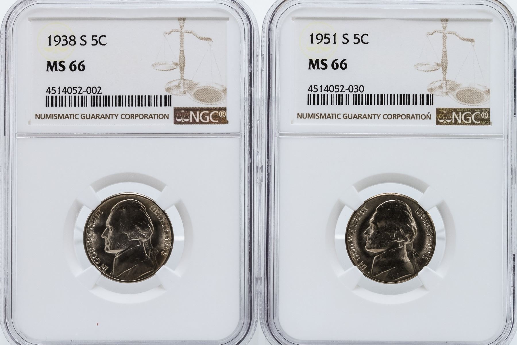 One 1938 and 1951 Jefferson Nickels NGC MS66.