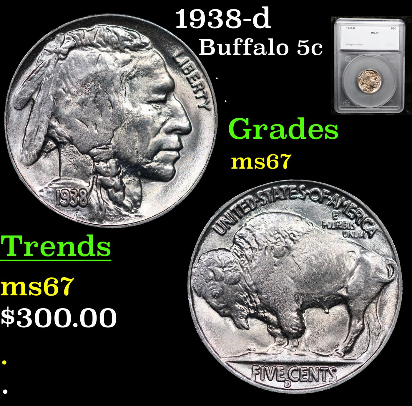 1938-d Buffalo Nickel 5c Graded ms67 By SEGS.