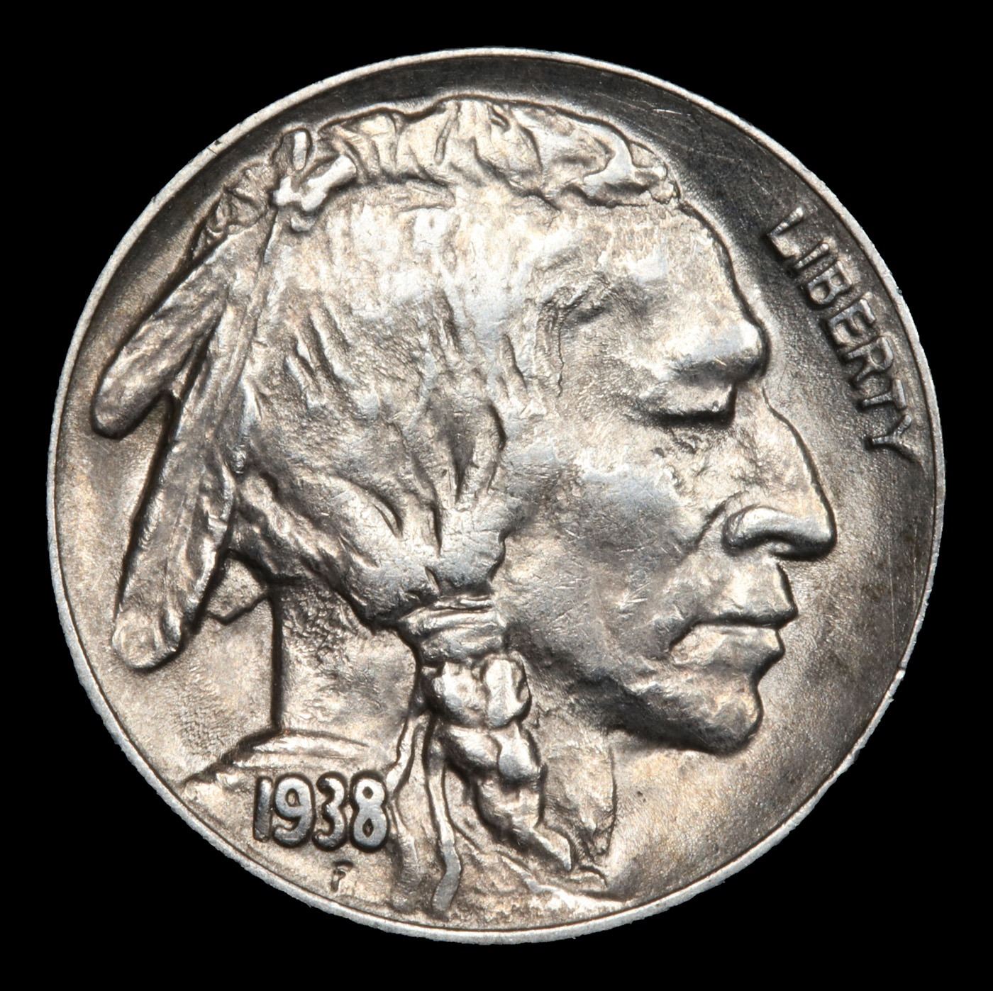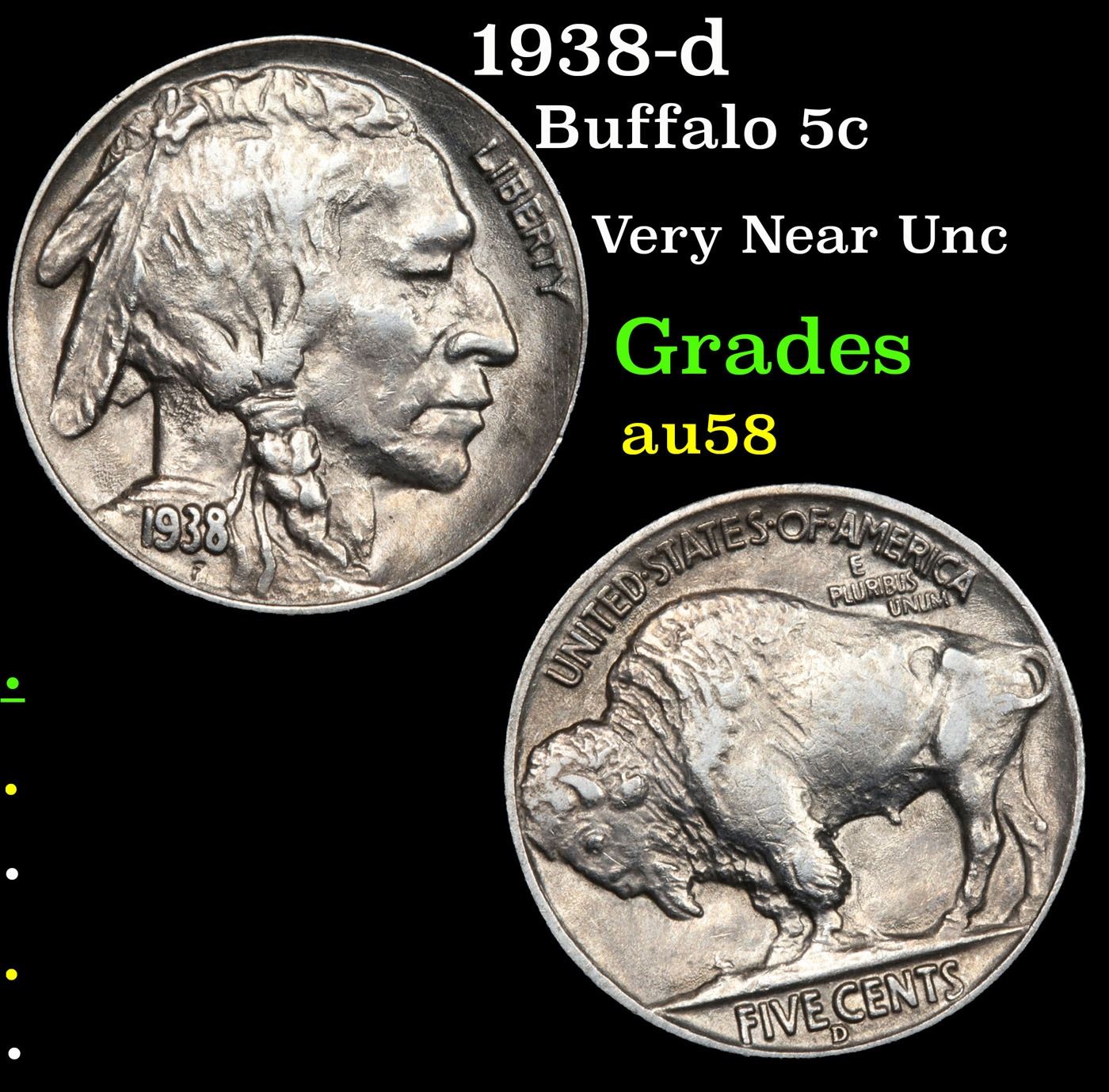 1938-d Buffalo Nickel 5c Grades Choice AU/BU Slider.