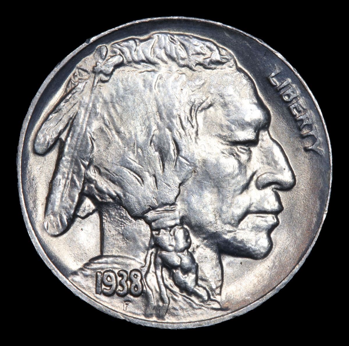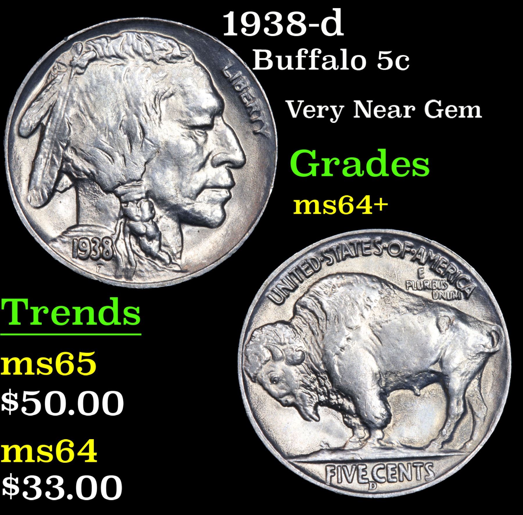 1938-d . Very Near Gem Buffalo Nickel 5c Grades Choice+ Unc.