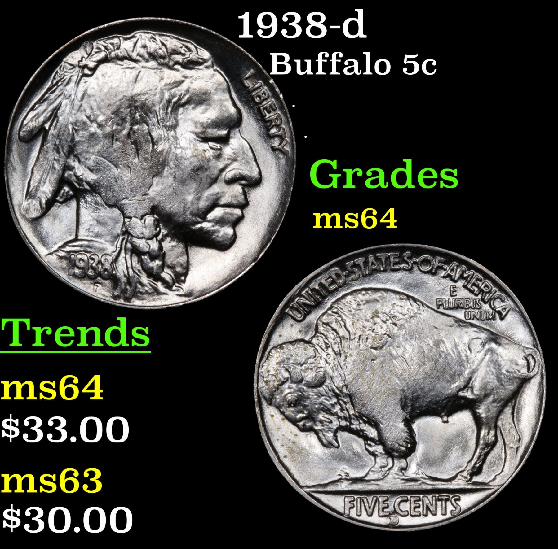 1938-d Buffalo Nickel 5c Grades Choice Unc.