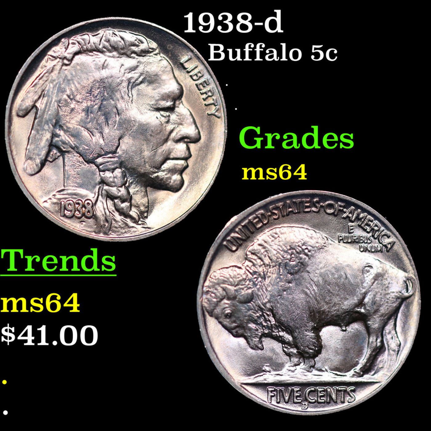 1938-d Buffalo Nickel 5c Grades Choice Unc.