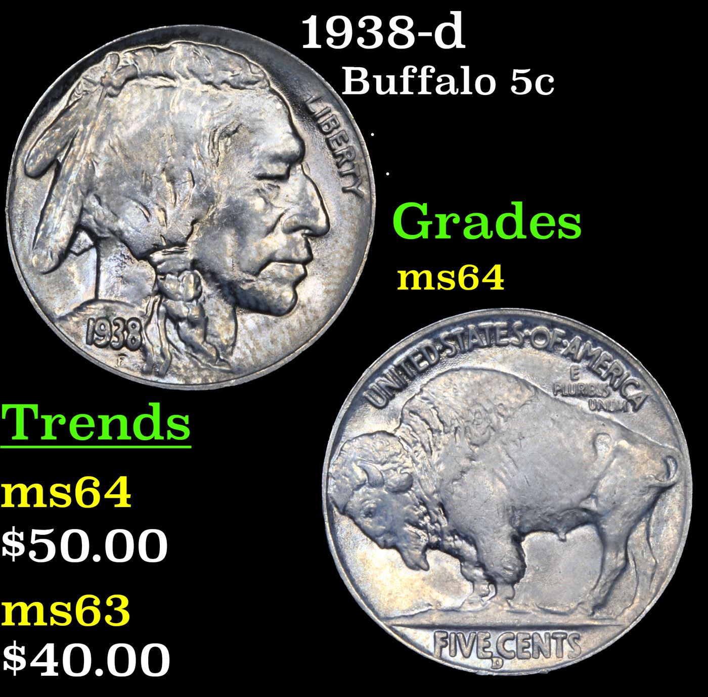 1938-d Buffalo Nickel 5c Grades Choice Unc.
