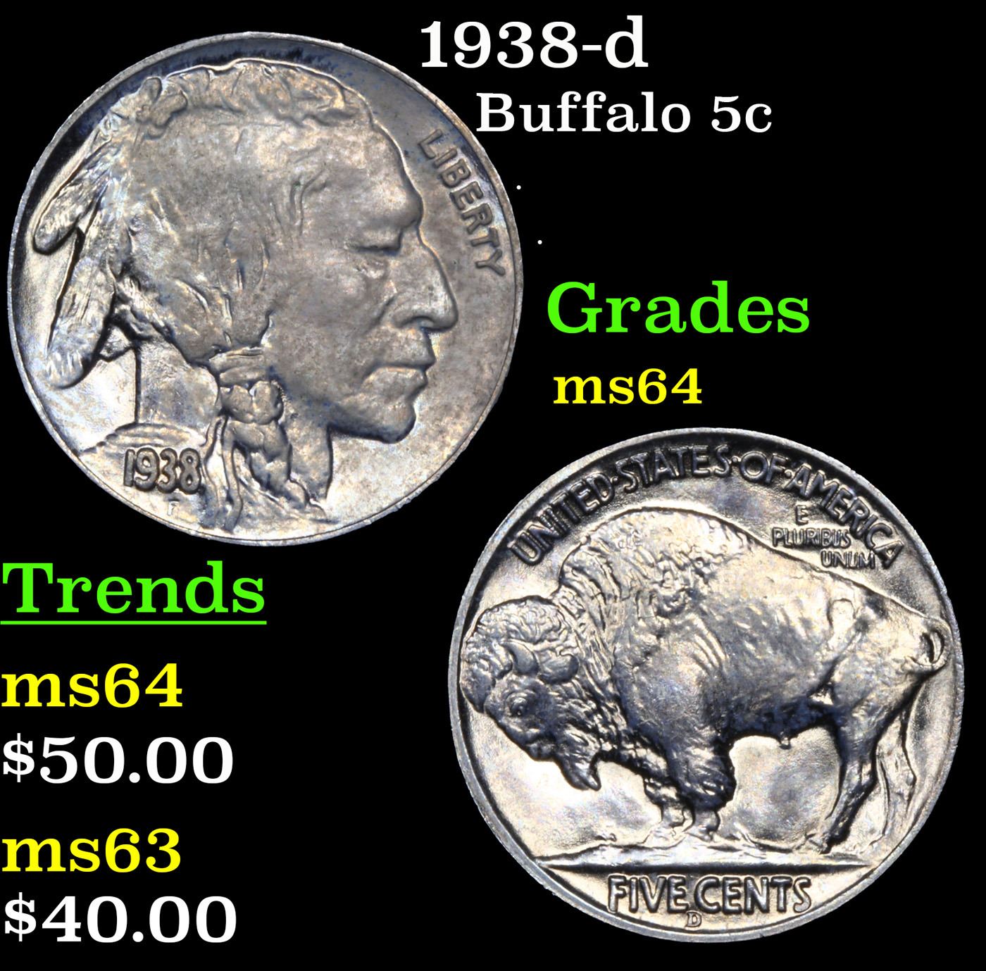 1938-d Buffalo Nickel 5c Grades Choice Unc.