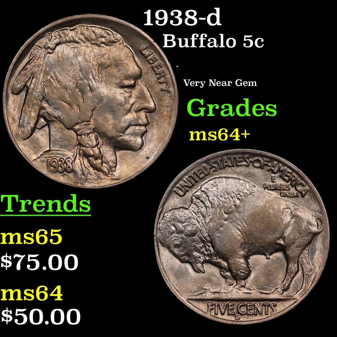 1938-d Buffalo Nickel 5c Grades Choice+ Unc.