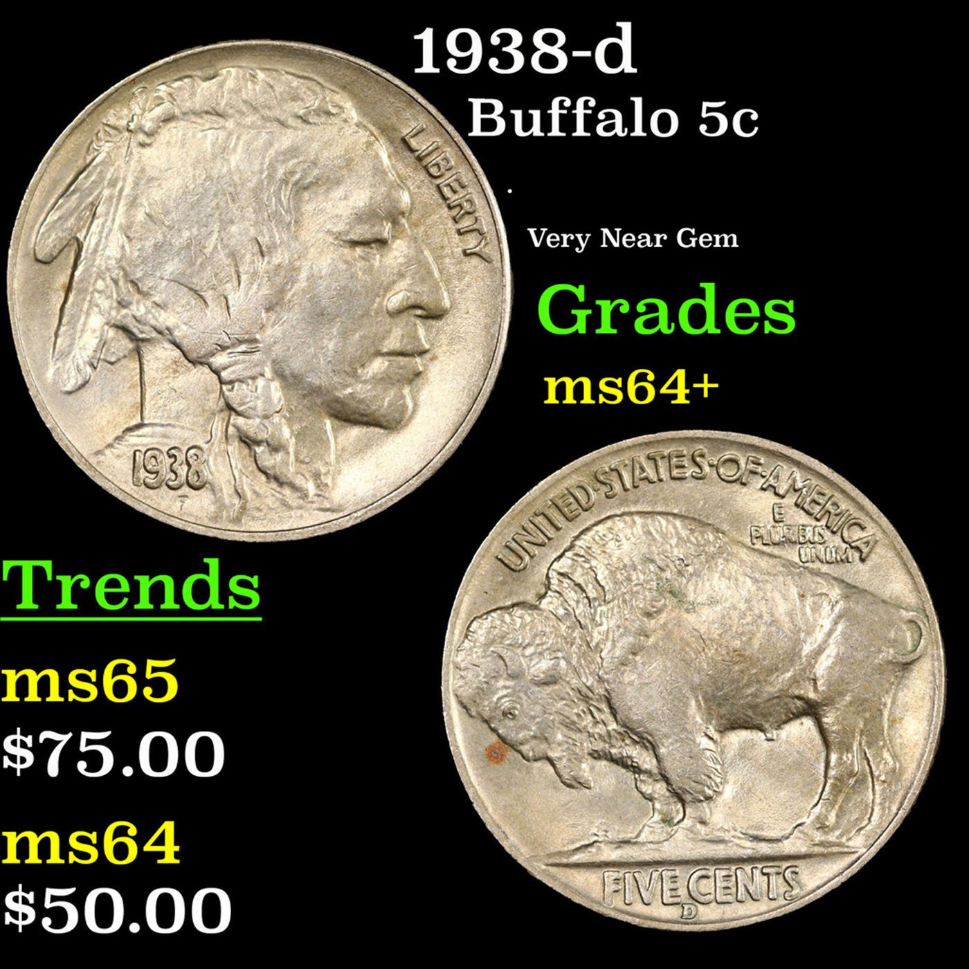 1938-d Buffalo Nickel 5c Grades Choice+ Unc.