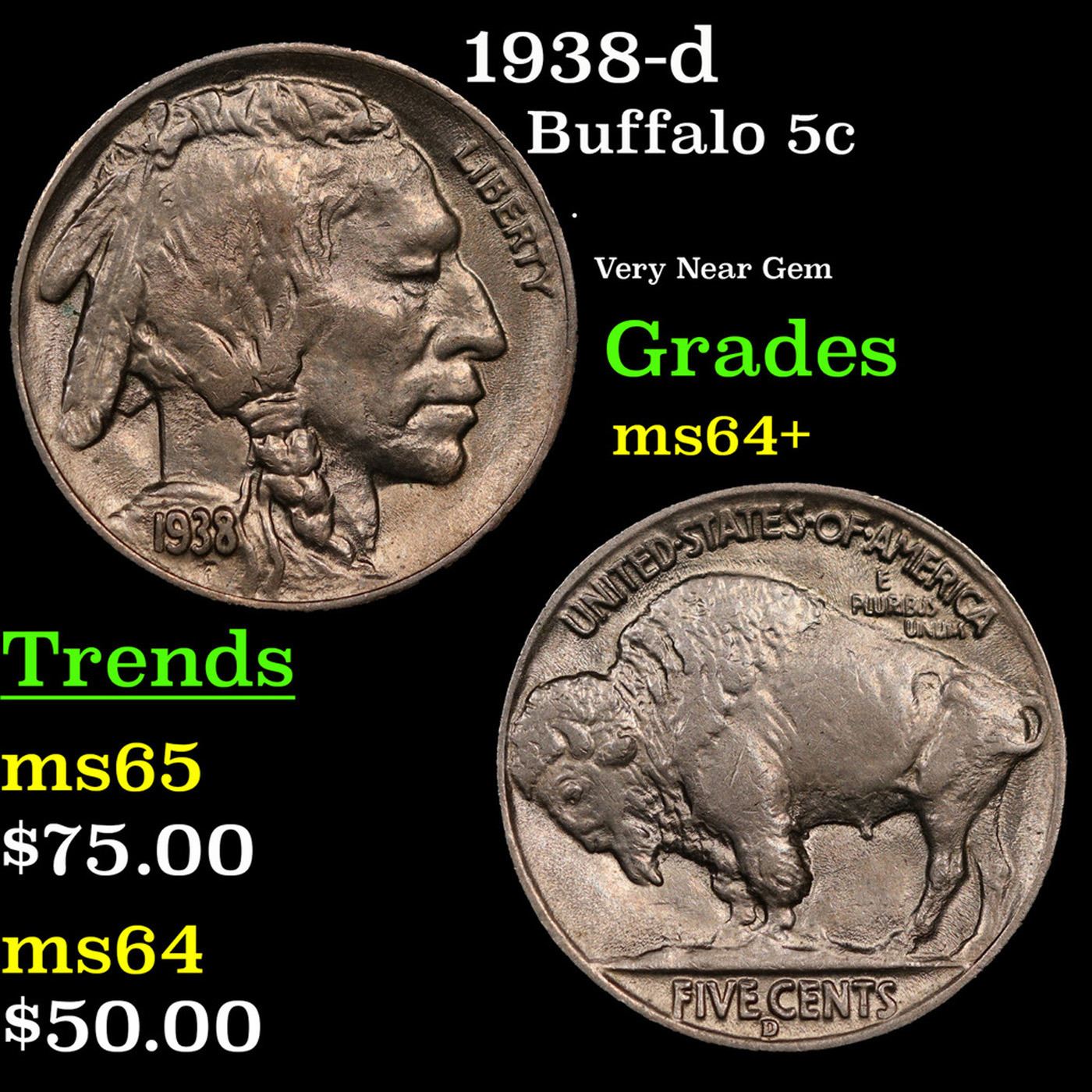 1938-d Buffalo Nickel 5c Grades Choice+ Unc.