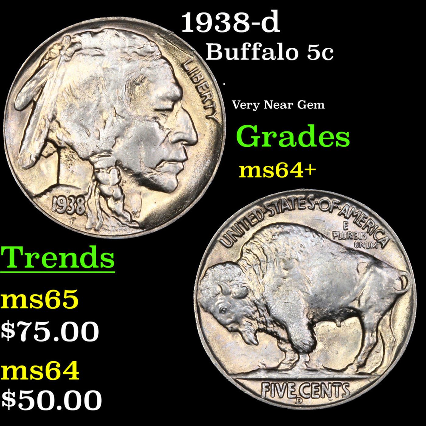 1938-d Buffalo Nickel 5c Grades Choice+ Unc.