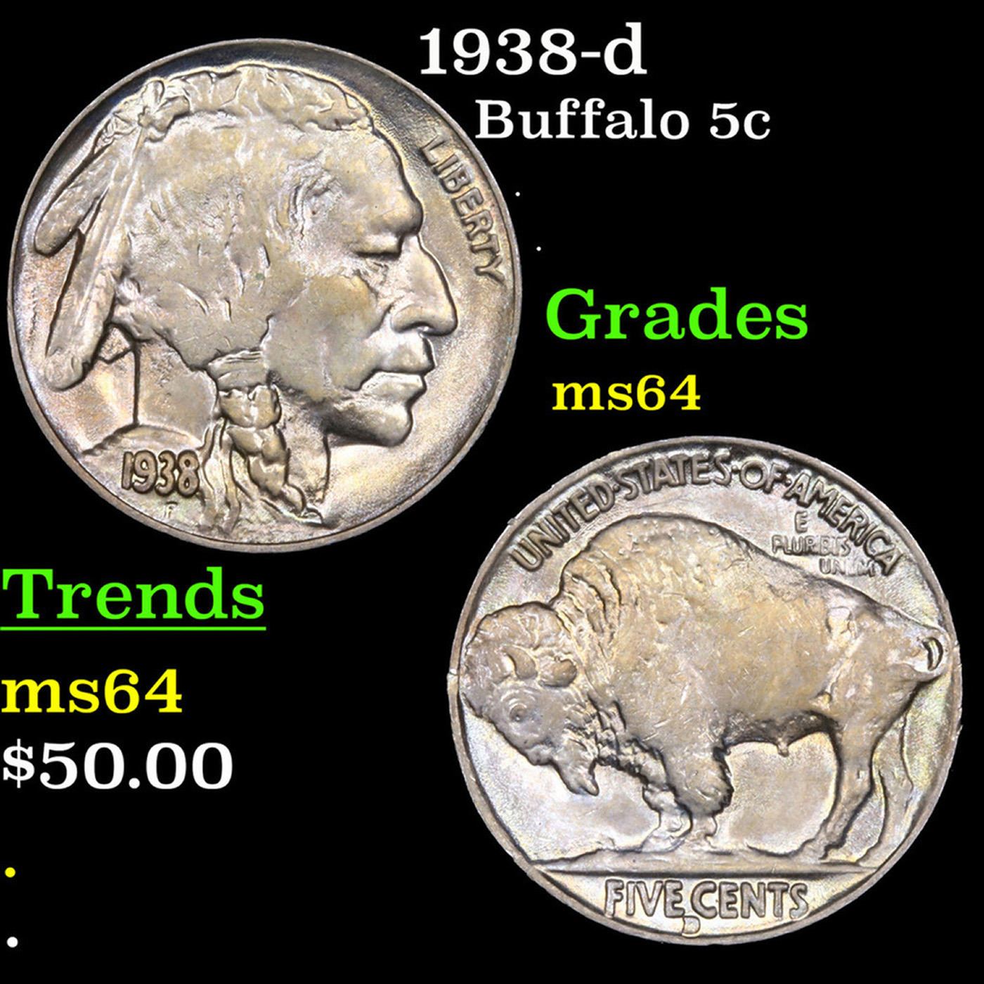 1938-d Buffalo Nickel 5c Grades Choice Unc.