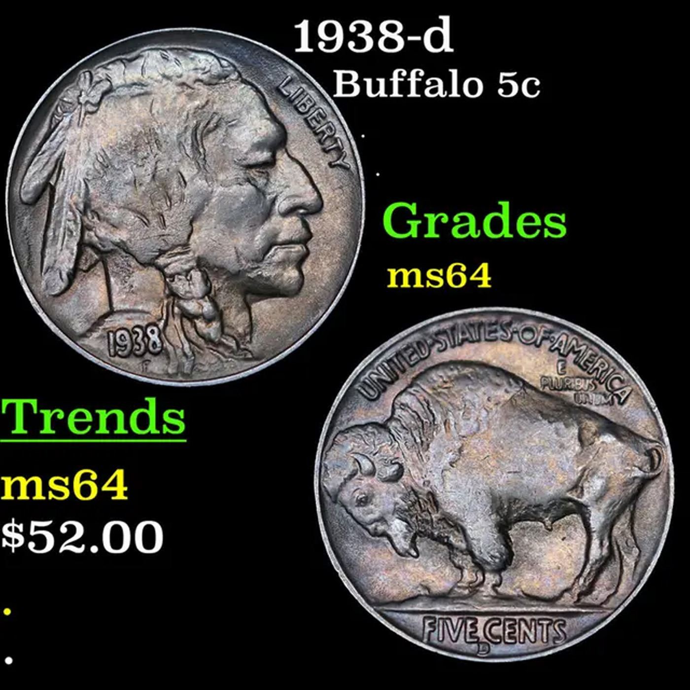 1938-d Buffalo Nickel 5c Grades Choice Unc.