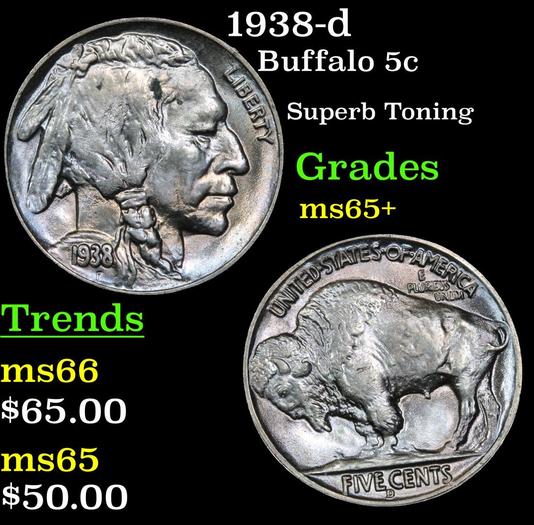 1938-d Superb Toning . Buffalo Nickel 5c Grades GEM+ Unc.