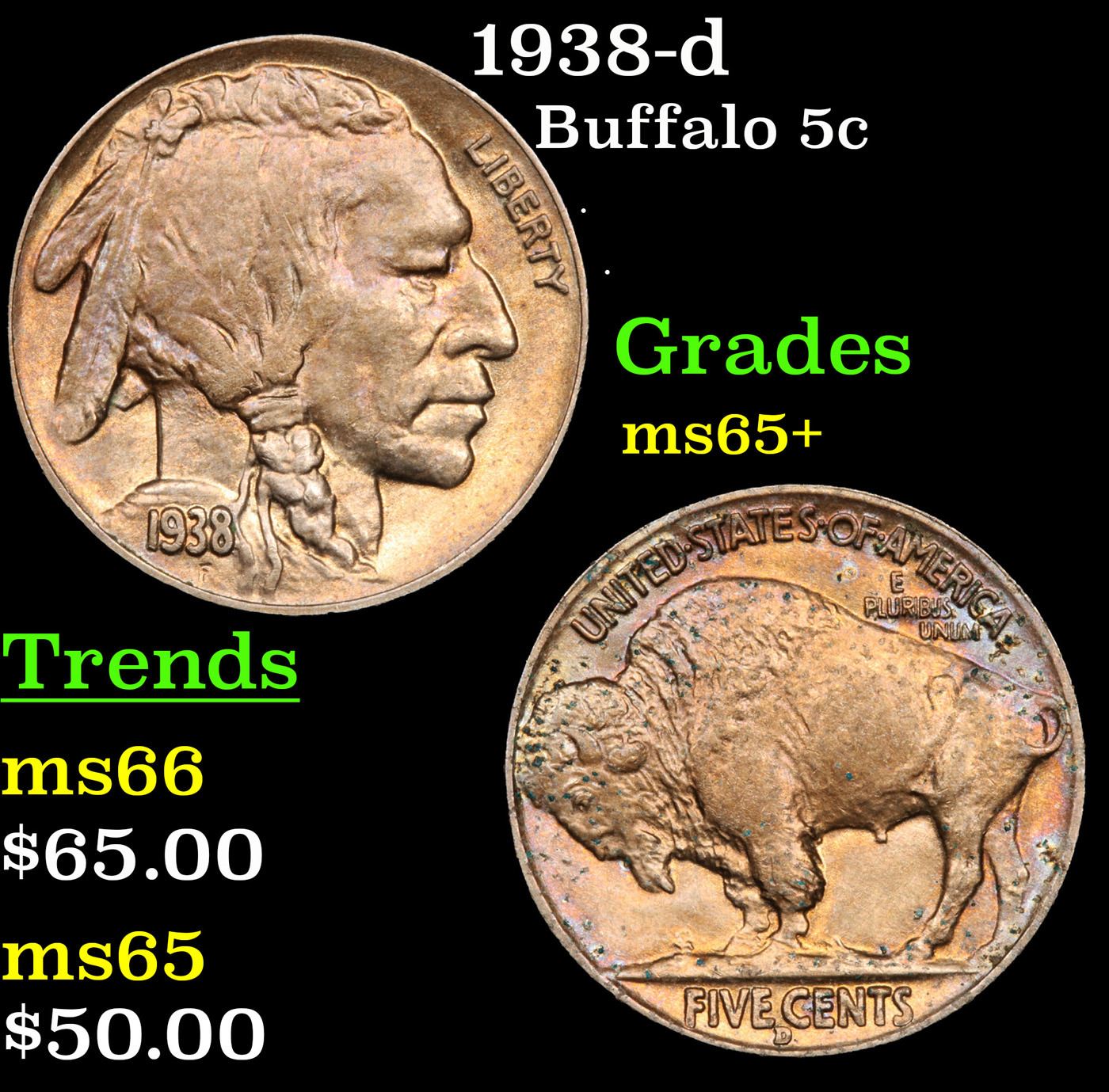 1938-d Buffalo Nickel 5c Grades GEM+ Unc.
