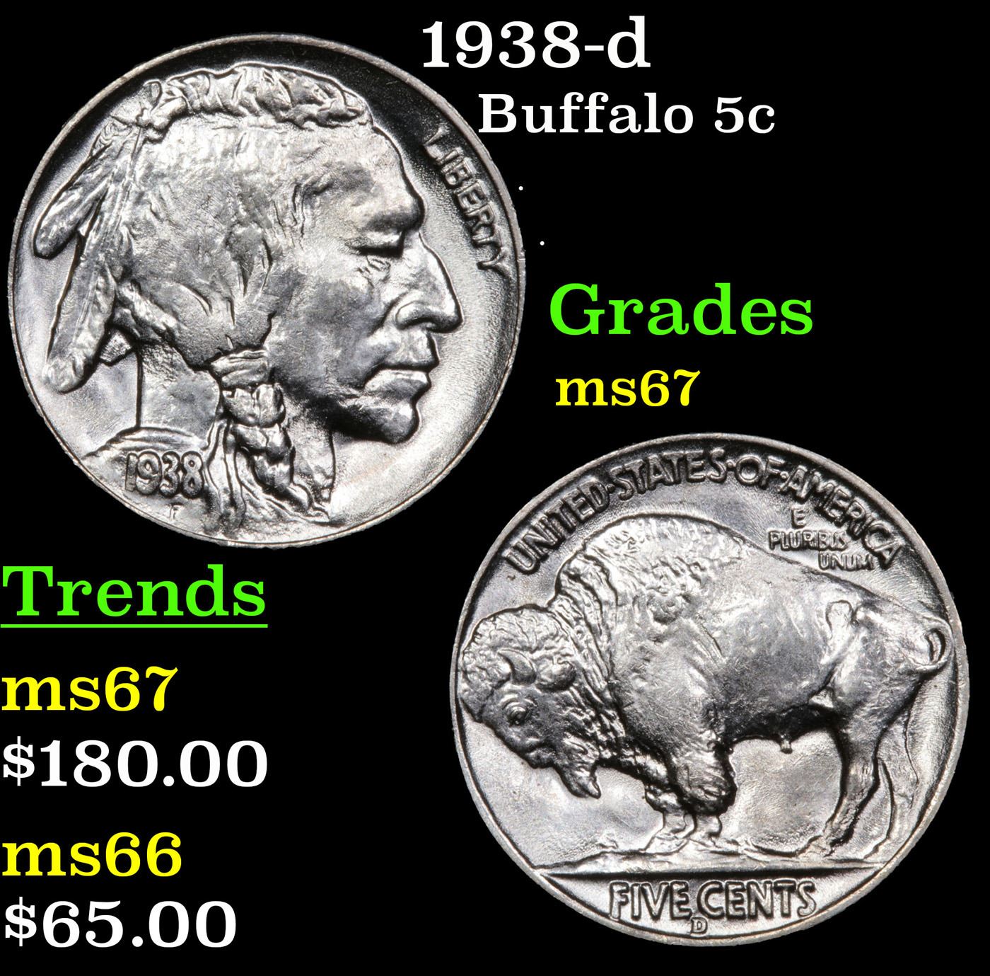 1938-d Buffalo Nickel 5c Grades GEM++ Unc.