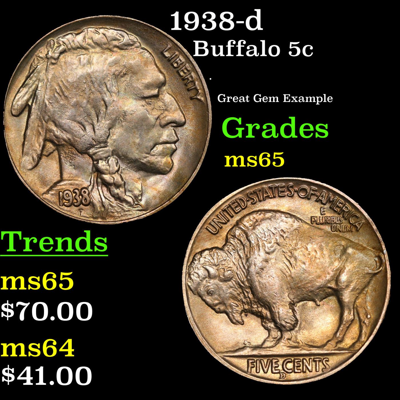 1938-d Buffalo Nickel 5c Grades GEM Unc.