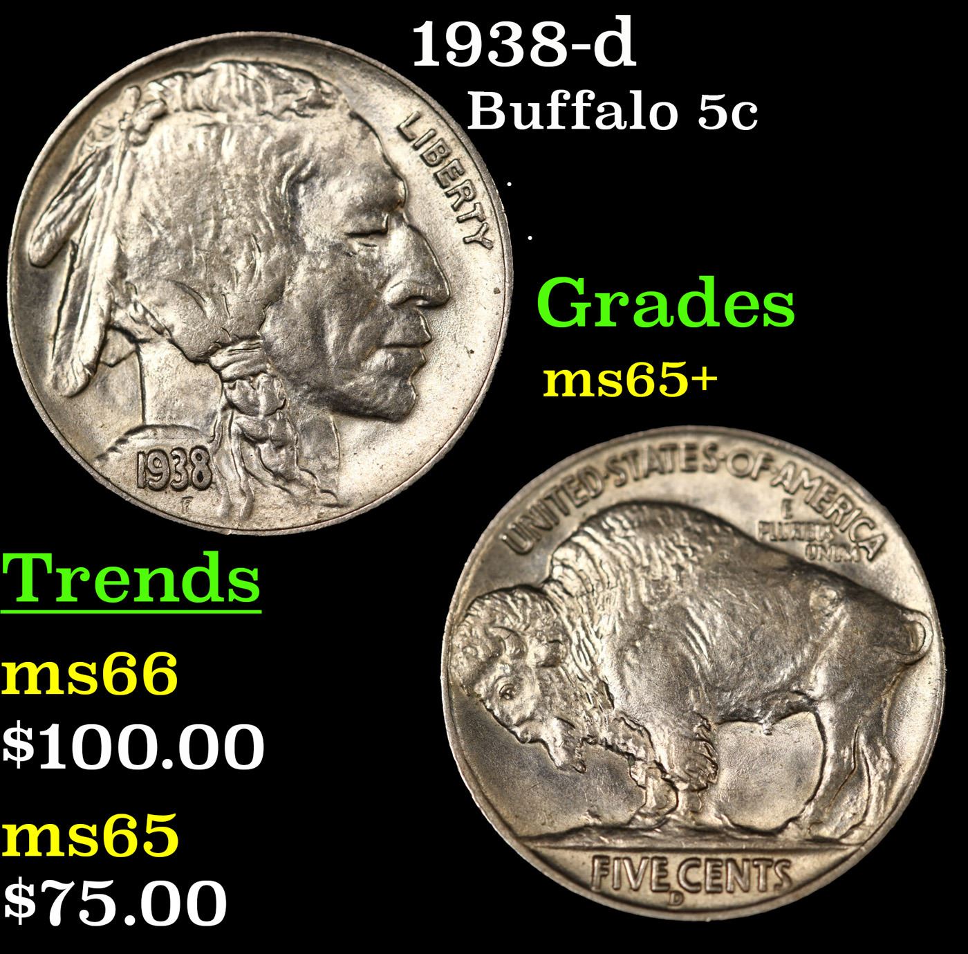 1938-d Buffalo Nickel 5c Grades GEM+ Unc.