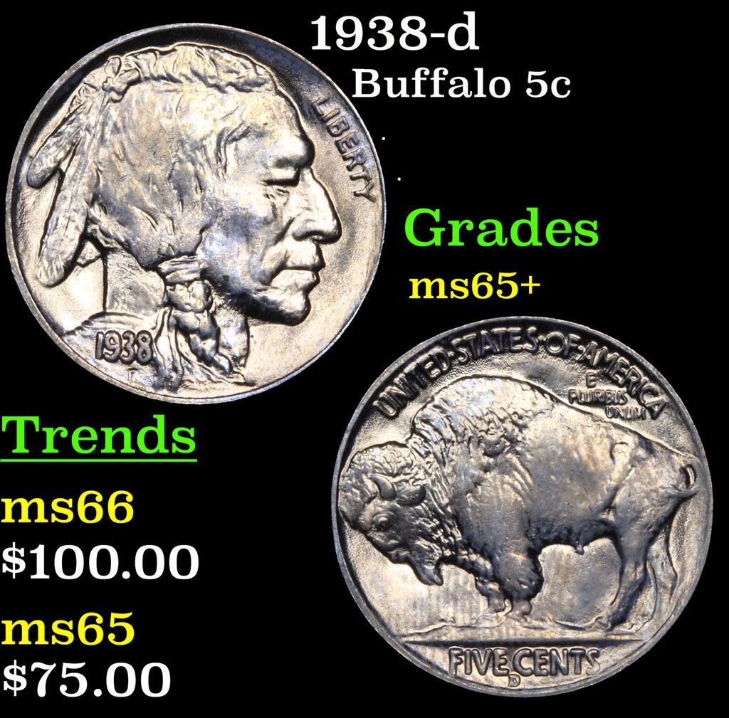 1938-d Buffalo Nickel 5c Grades GEM+ Unc.