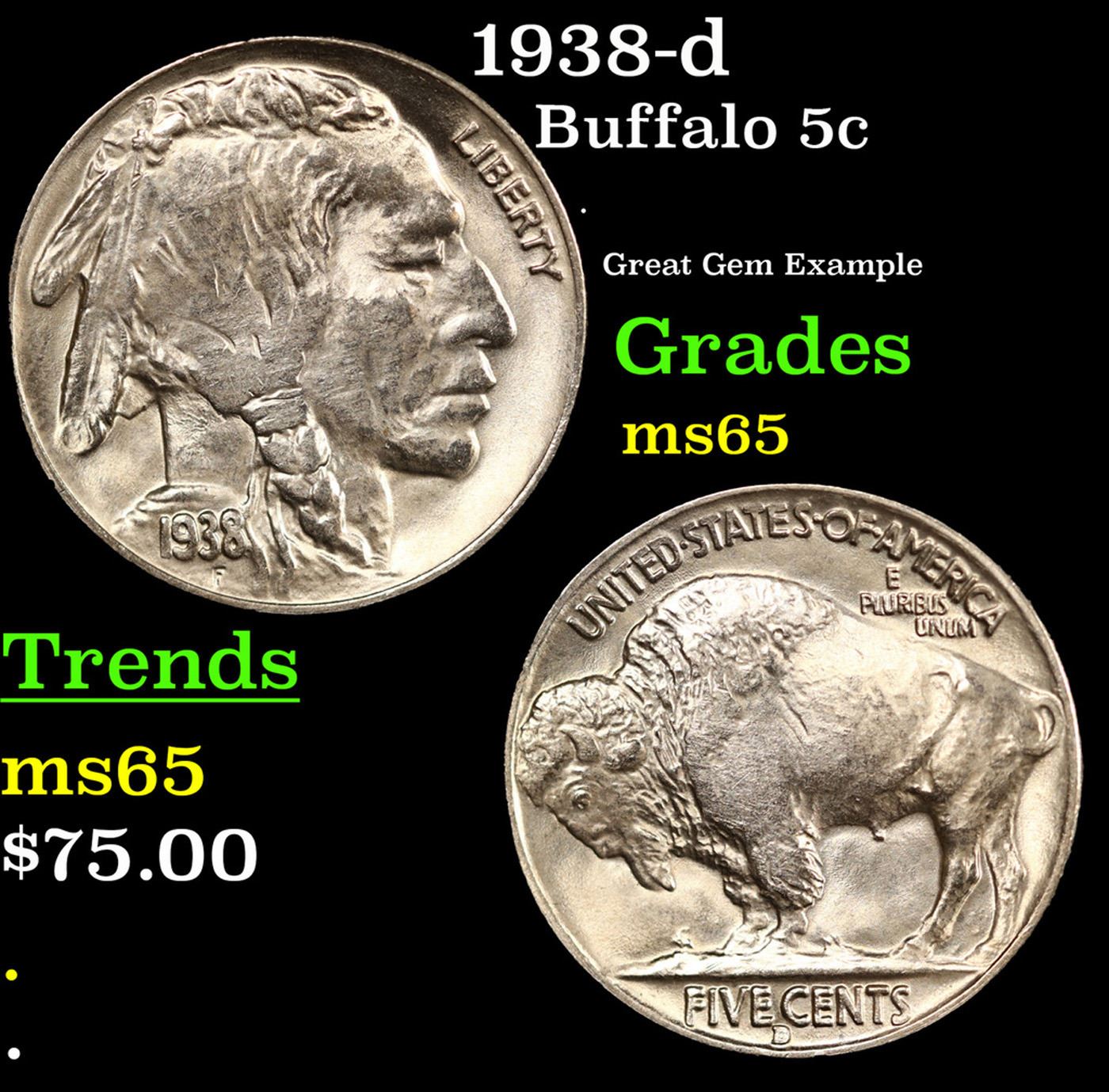 1938-d Buffalo Nickel 5c Grades GEM Unc.