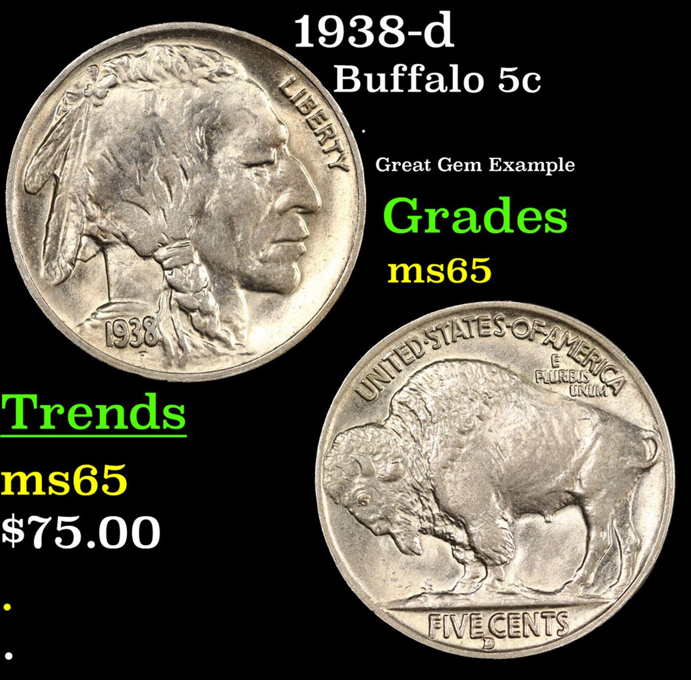 1938-d Buffalo Nickel 5c Grades GEM Unc.