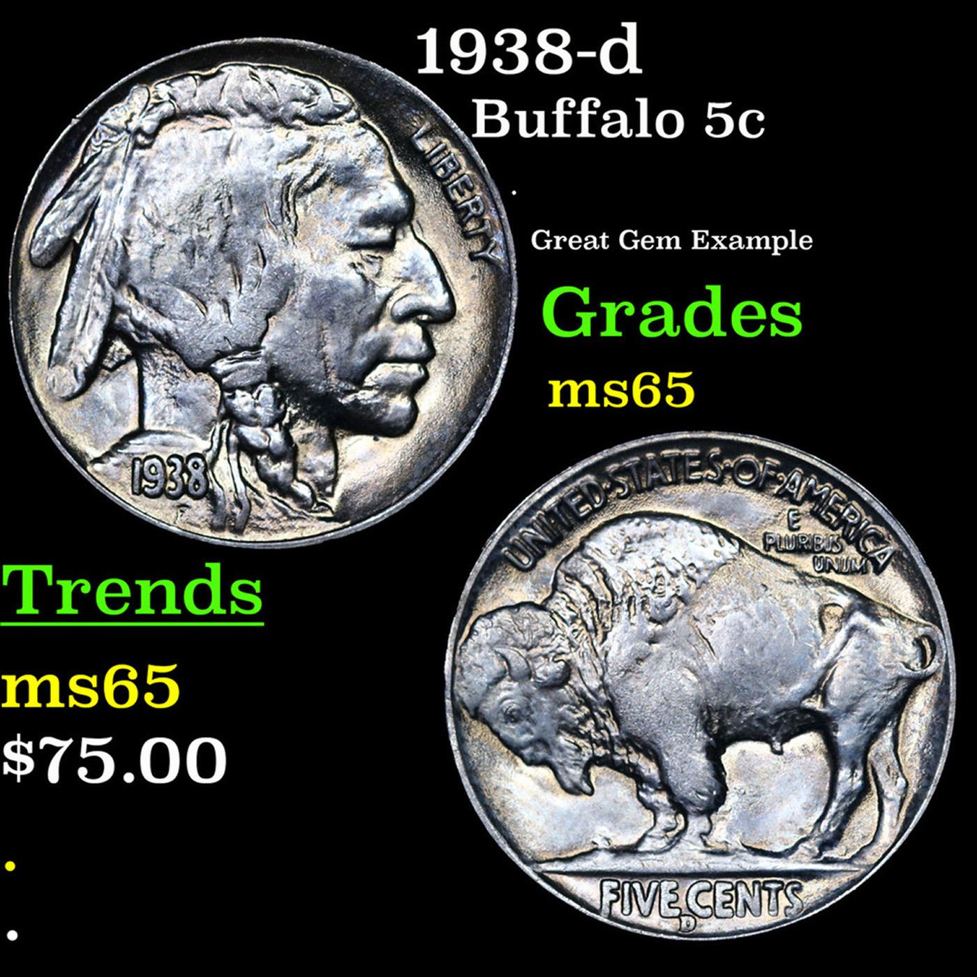 1938-d Buffalo Nickel 5c Grades GEM Unc.