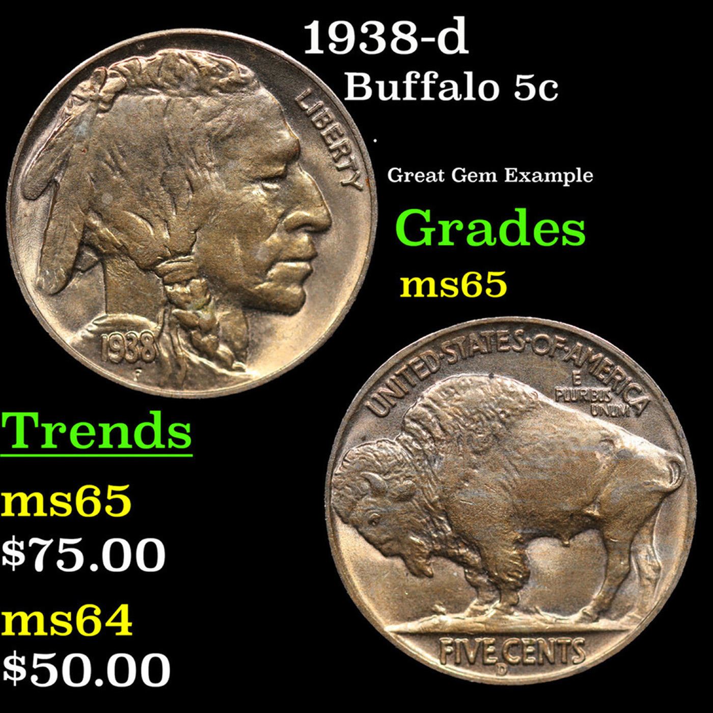 1938-d Buffalo Nickel 5c Grades GEM Unc.