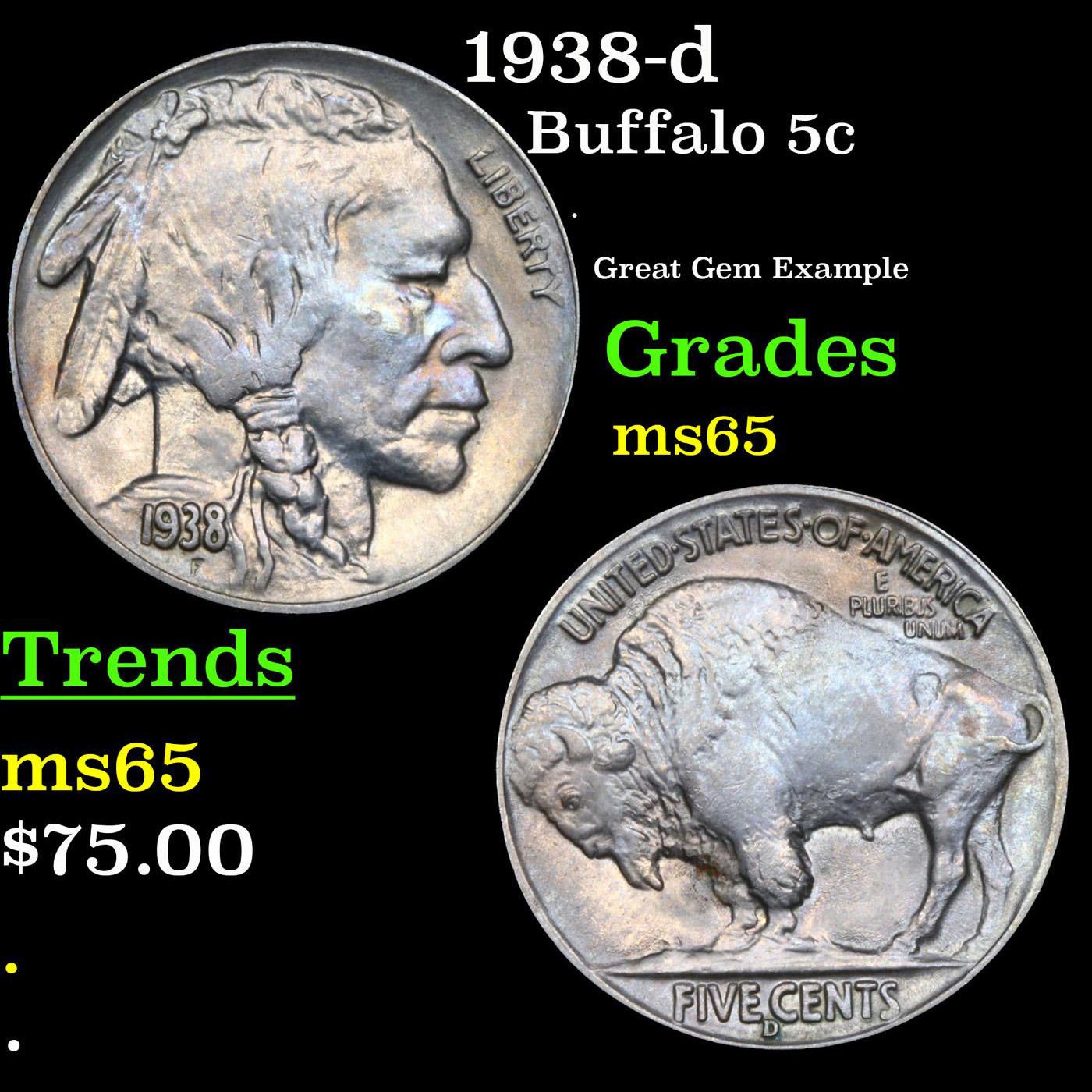 1938-d Buffalo Nickel 5c Grades GEM Unc.