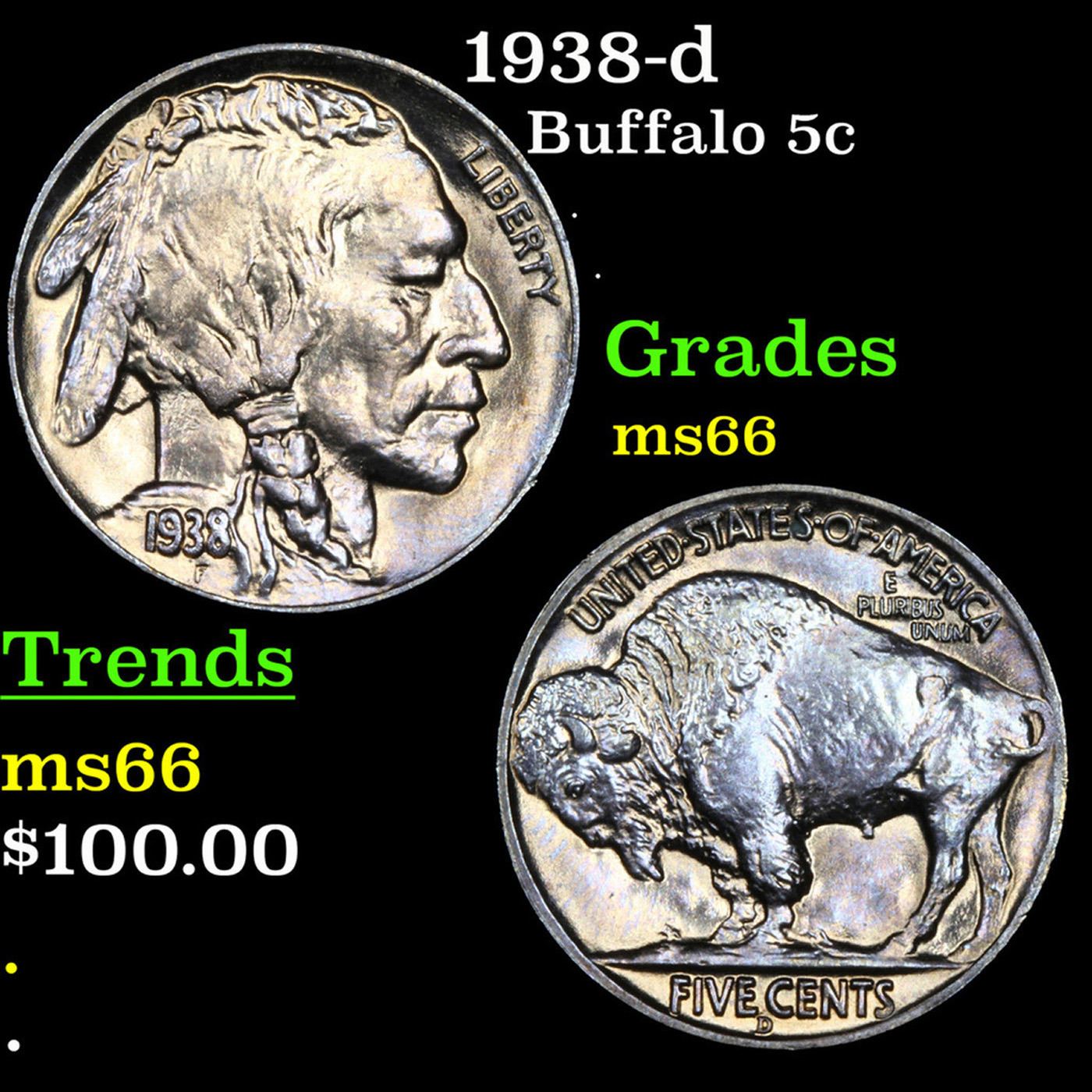 1938-d Buffalo Nickel 5c Grades GEM+ Unc.